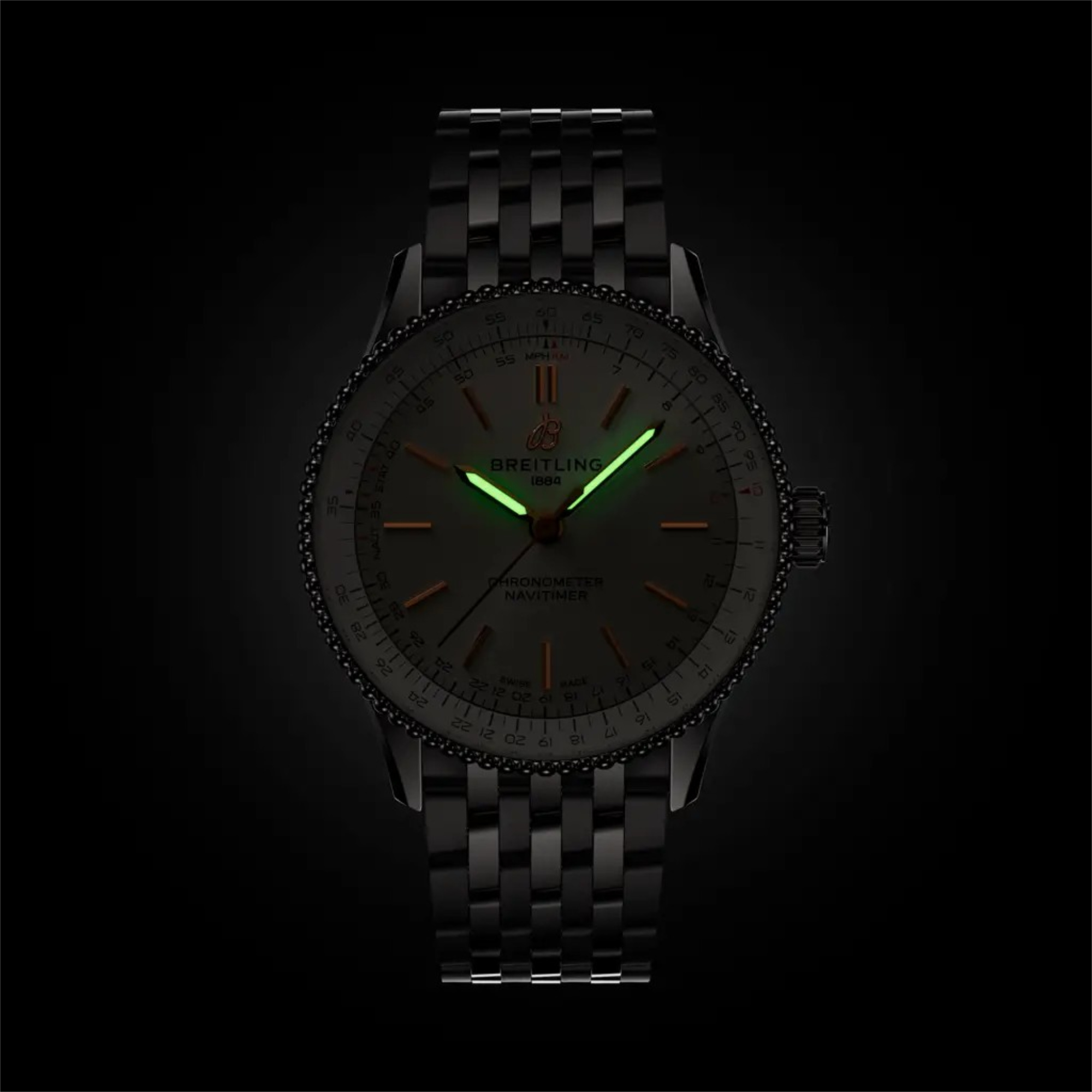 Ref. A17327211G1A1 - Breitlings Ikone – für die Reise. Die Navitimer ist eine der bekanntesten Uhren, die je hergestellt wurden. Sie steht als eine der grossartigsten Uhren aller Zeiten auf den Sammlerlisten. Was 1952 als Instrument für Piloten begann, hat inzwischen eine tiefe Bedeutung für jeden, den dieser Zeitmesser auf seiner persönlichen Reise begleitet. Unsere Ikone kommt jetzt in den Grössen 36 und 32 mm für Frauen und Männer, die die Optik und Haptik einer Uhr mit kleinerem Durchmesser lieben. Während die 36-mm-Navitimer die Perlenlünette und den ikonischen kreisförmigen Rechenschieber aufweist, die der Navitimer ihr unverkennbares Aussehen verleihen, verzichtet die beeindruckende 32-mm-Variante auf den Rechenschieber zugunsten eines schlichteren Zifferblattdesigns, das auf den schlanken Durchmesser abgestimmt ist.