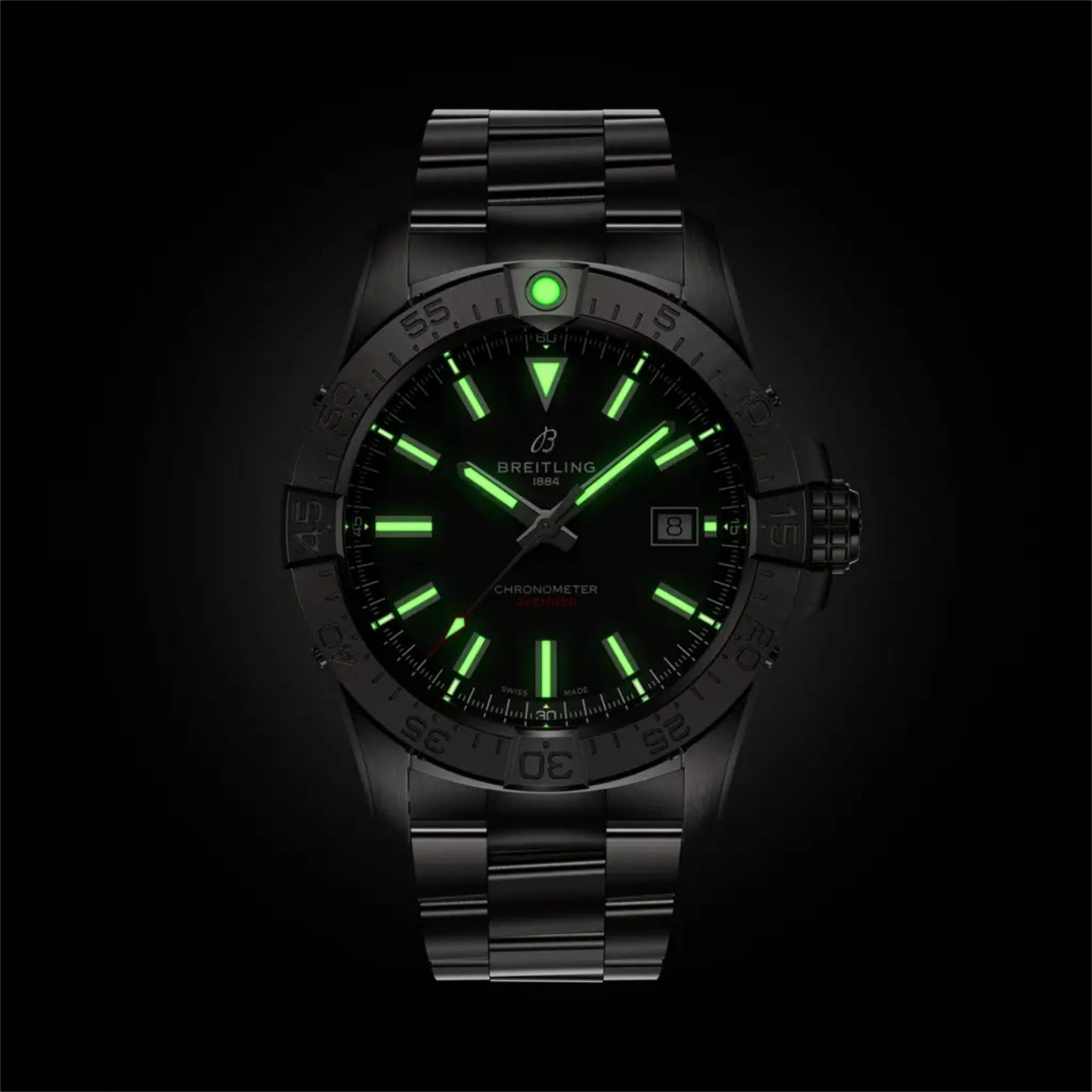 Ref. A17328101B1A1 - Seit über 20 Jahren ist Breitlings Avenger Vorreiter in Sachen Flugabenteuer. Für Jetpiloten und -pilotinnen konstruiert, ist dies eine Uhr, die es mit den härtesten Bedingungen imIn der Kollektion kommen unterschiedliche Materialien zum Einsatz: Edelstahl in den regulären Modellen, Keramik und Titan in der Night Mission- entsprechen dem Design der Luftfahrt, während die Farben des Zifferblatts den Farben der Militäruniformen nachempfunden sind und so Leistung mit modernem Luftfahrtstil verbinden.