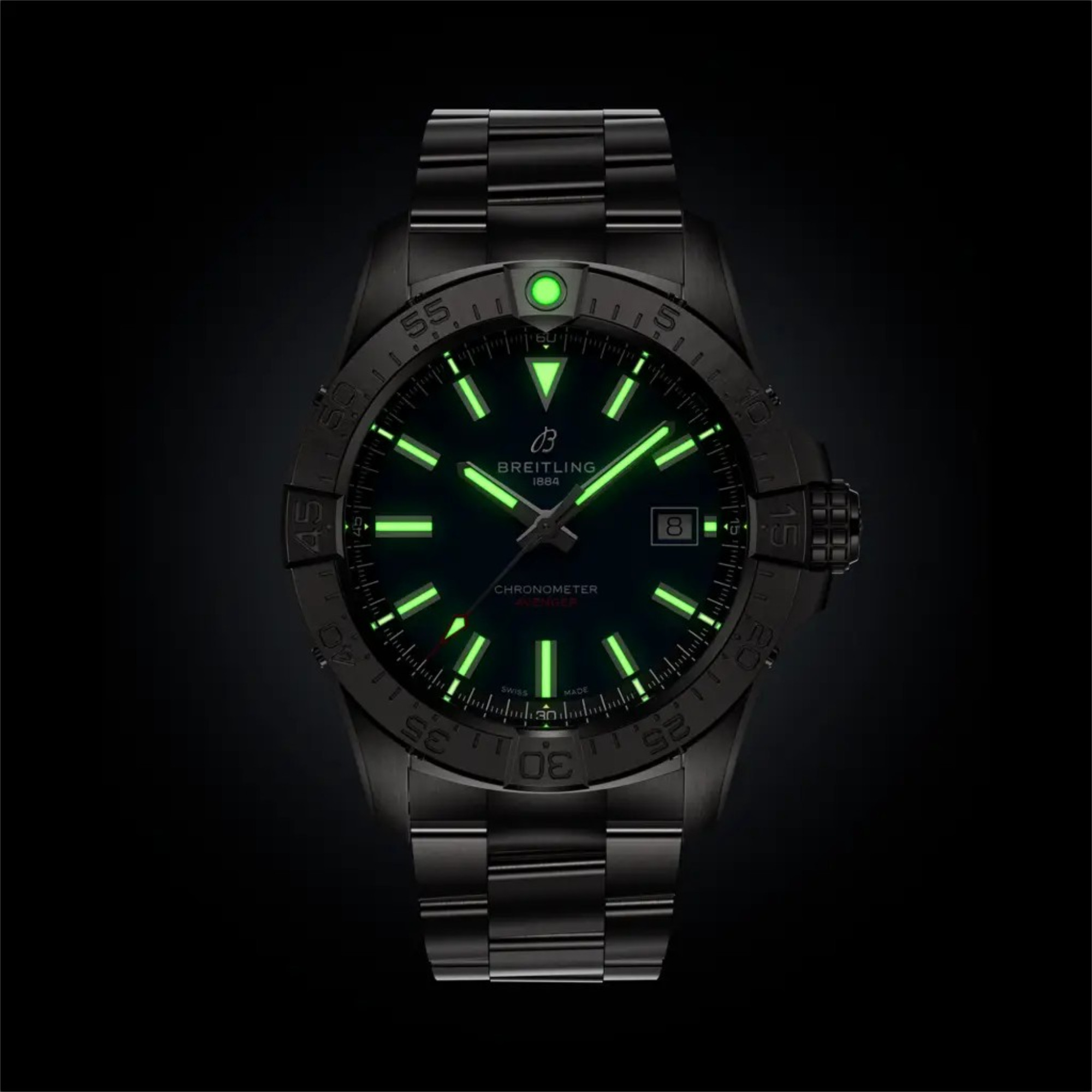 Ref. A17328101C1A1 - Seit über 20 Jahren ist Breitlings Avenger Vorreiter in Sachen Flugabenteuer. Für Jetpiloten und -pilotinnen konstruiert, ist dies eine Uhr, die es mit den härtesten Bedingungen imIn der Kollektion kommen unterschiedliche Materialien zum Einsatz: Edelstahl in den regulären Modellen, Keramik und Titan in der Night Mission- entsprechen dem Design der Luftfahrt, während die Farben des Zifferblatts den Farben der Militäruniformen nachempfunden sind und so Leistung mit modernem Luftfahrtstil verbinden.