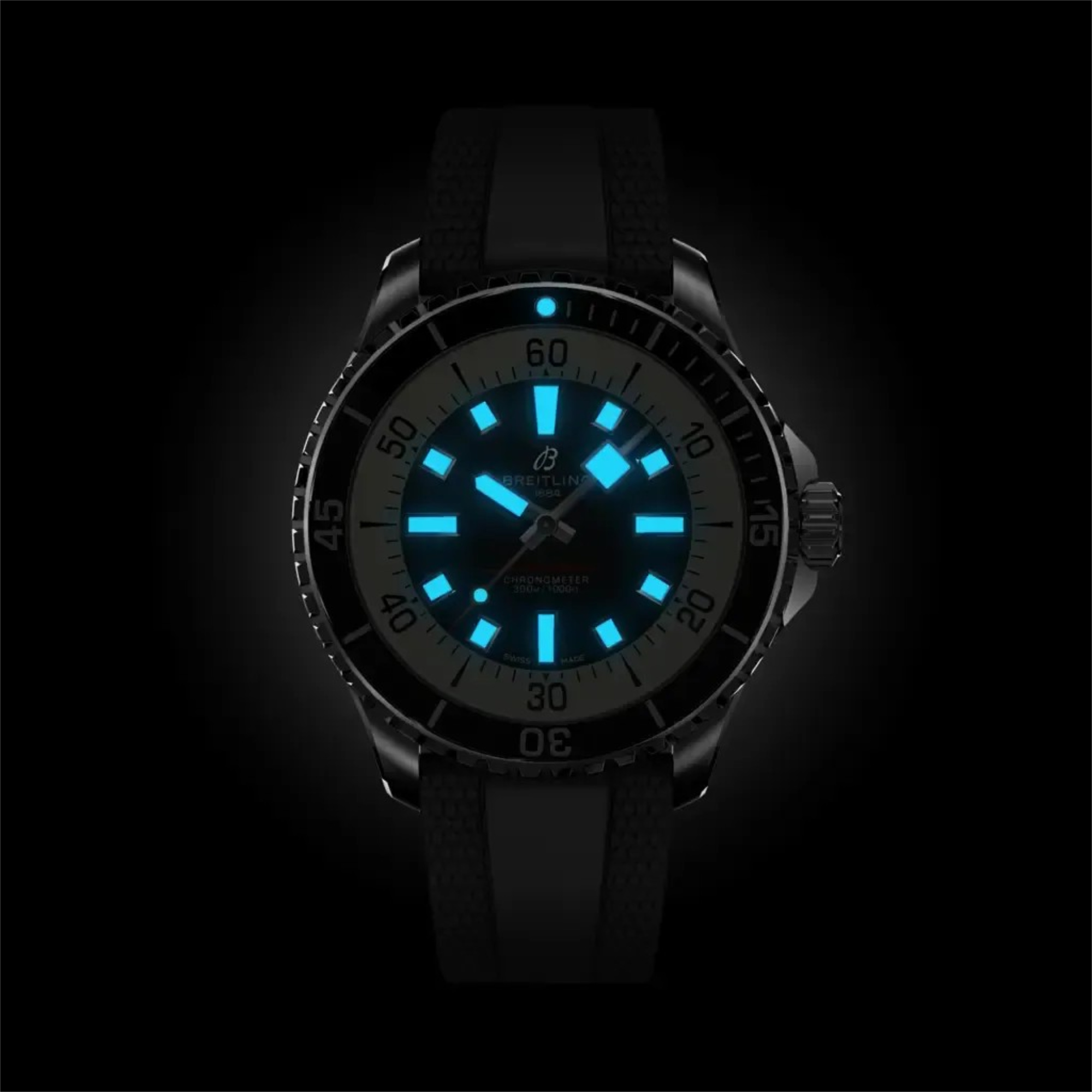 Ref. A17376211B1S1 - Die neue Superocean sieht nicht nur gut aus, sondern ist auch ein technisches Meisterwerk. Sie ist bis 300 m (1000 ft) wasserdicht und verfügt über breite Zeiger und Indizes, die mit Super-LumiNova® beschichtet sind und eine außergewöhnlich gute Ablesbarkeit unter Wasser ermöglichen. Ihre kratzfeste Lünette mit Keramikeinlage verschleißt nicht und bleicht nicht aus. Aus Sicherheitsgründen ist die Lünette bei den meisten Größen nur einseitig drehbar; die bidirektionale Lünette der 46-mm-Uhr ist durch eine patentierte Arretierung gesichert. Darüber hinaus ist diese Uhr stoßfest sowie sand- und salzwasserbeständig. Für das automatische Breitling-Kaliber 17 gilt eine 2-jährige Garantie und das Uhr werk bietet ca. 38 Stunden Gangreserve.Ihr Ansprechpartner