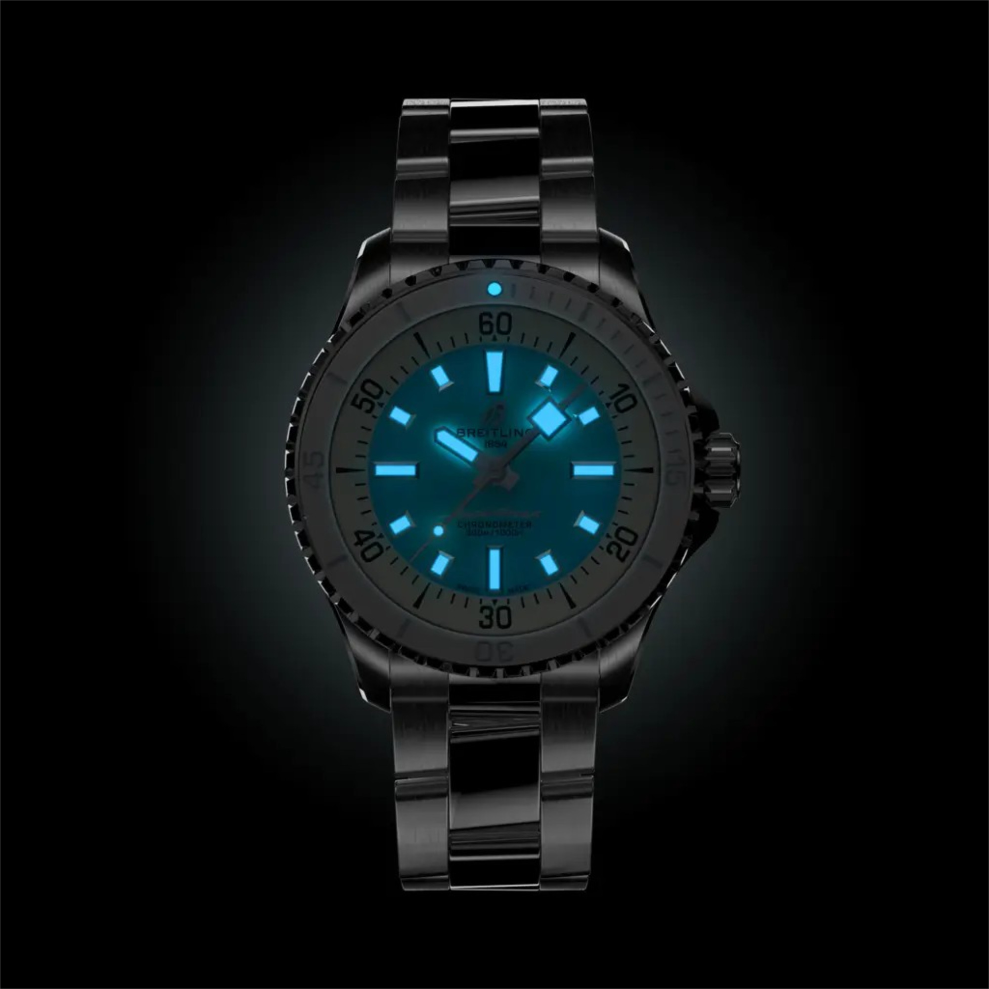 Ref. A17377211C1A1 - Die neue Superocean sieht nicht nur gut aus, sondern ist auch ein technisches Meisterwerk. Sie ist bis 300 m (1000 ft) wasserdicht und verfügt über breite Zeiger und Indizes, die mit Super-LumiNova® beschichtet sind und eine außergewöhnlich gute Ablesbarkeit unter Wasser ermöglichen. Ihre kratzfeste Lünette mit Keramikeinlage verschleißt nicht und bleicht nicht aus. Aus Sicherheitsgründen ist die Lünette bei den meisten Größen nur einseitig drehbar; die bidirektionale Lünette der 46-mm-Uhr ist durch eine patentierte Arretierung gesichert. Darüber hinaus ist diese Uhr stoßfest sowie sand- und salzwasserbeständig. Für das automatische Breitling-Kaliber 17 gilt eine 2-jährige Garantie und das Uhr werk bietet ca. 38 Stunden Gangreserve.Ihr Ansprechpartner