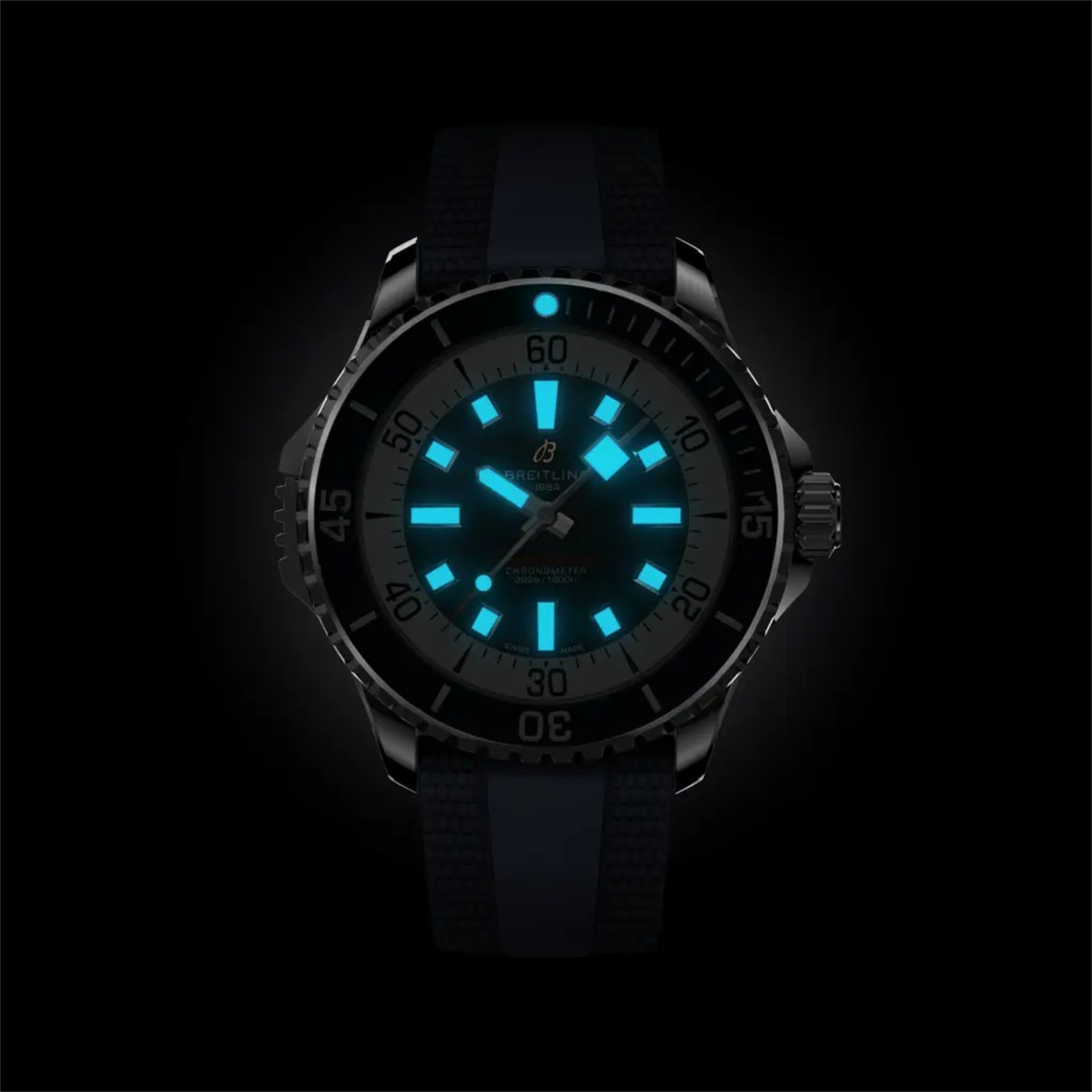Ref. A17378E71C1S1 - Die neue Superocean sieht nicht nur gut aus, sondern ist auch ein technisches Meisterwerk. Sie ist bis 300 m (1000 ft) wasserdicht und verfügt über breite Zeiger und Indizes, die mit Super-LumiNova® beschichtet sind und eine außergewöhnlich gute Ablesbarkeit unter Wasser ermöglichen. Ihre kratzfeste Lünette mit Keramikeinlage verschleißt nicht und bleicht nicht aus. Aus Sicherheitsgründen ist die Lünette bei den meisten Größen nur einseitig drehbar; die bidirektionale Lünette der 46-mm-Uhr ist durch eine patentierte Arretierung gesichert. Darüber hinaus ist diese Uhr stoßfest sowie sand- und salzwasserbeständig. Für das automatische Breitling-Kaliber 17 gilt eine 2-jährige Garantie und das Uhr werk bietet ca. 38 Stunden Gangreserve.Ihr Ansprechpartner