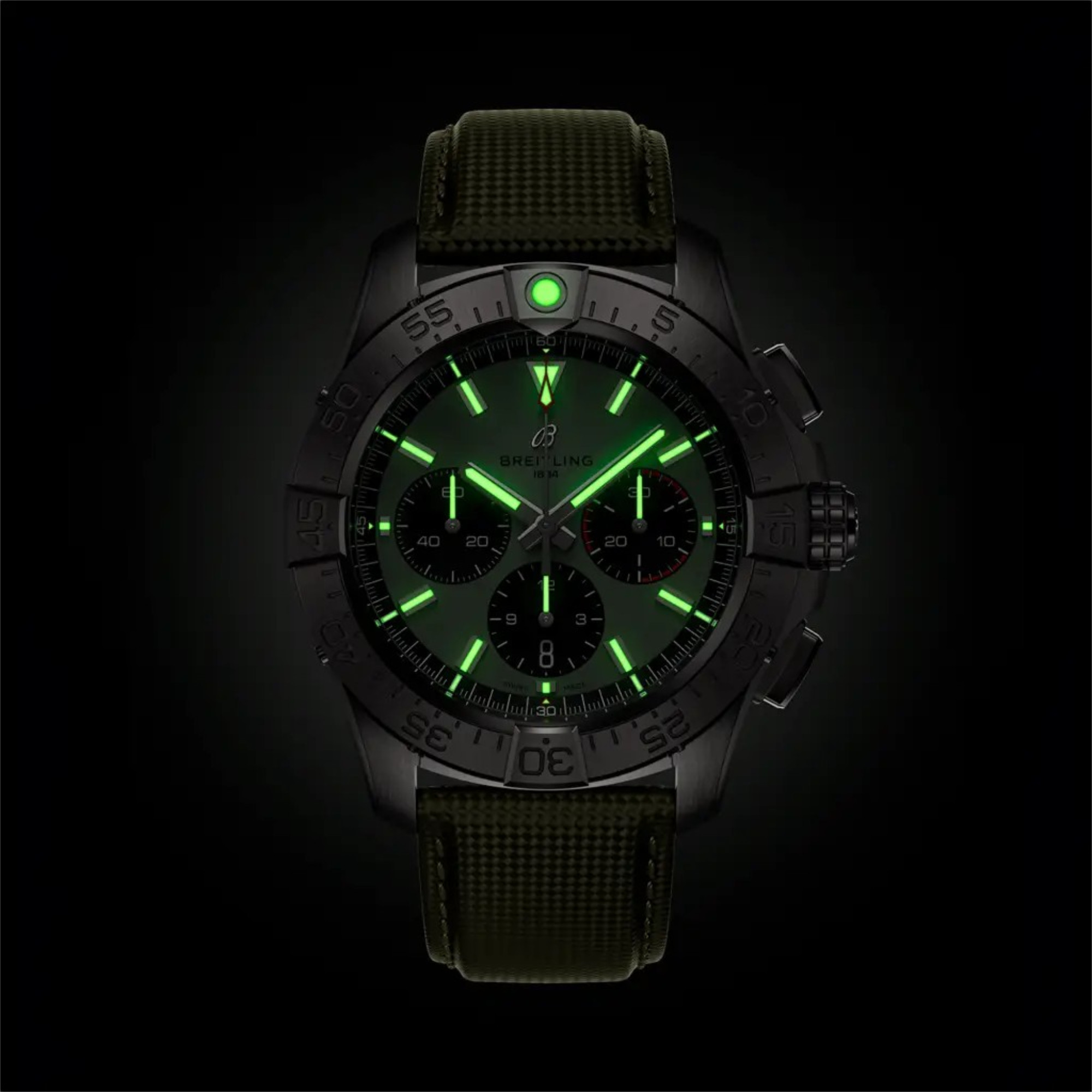 Ref. AB0147101L1X1 - Seit über 20 Jahren ist Breitlings Avenger Vorreiter in Sachen Flugabenteuer. Für Jetpiloten und -pilotinnen konstruiert, ist dies eine Uhr, die es mit den härtesten Bedingungen imIn der Kollektion kommen unterschiedliche Materialien zum Einsatz: Edelstahl in den regulären Modellen, Keramik und Titan in der Night Mission- entsprechen dem Design der Luftfahrt, während die Farben des Zifferblatts den Farben der Militäruniformen nachempfunden sind und so Leistung mit modernem Luftfahrtstil verbinden.
