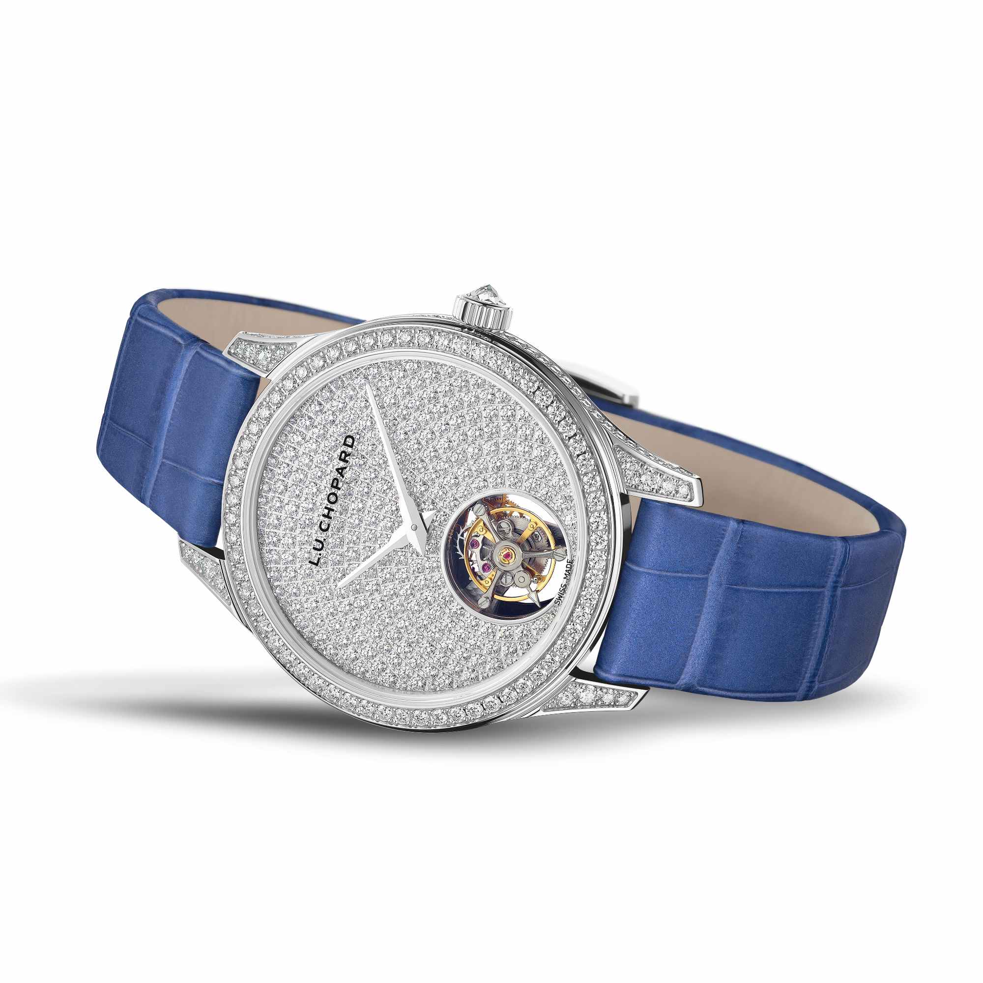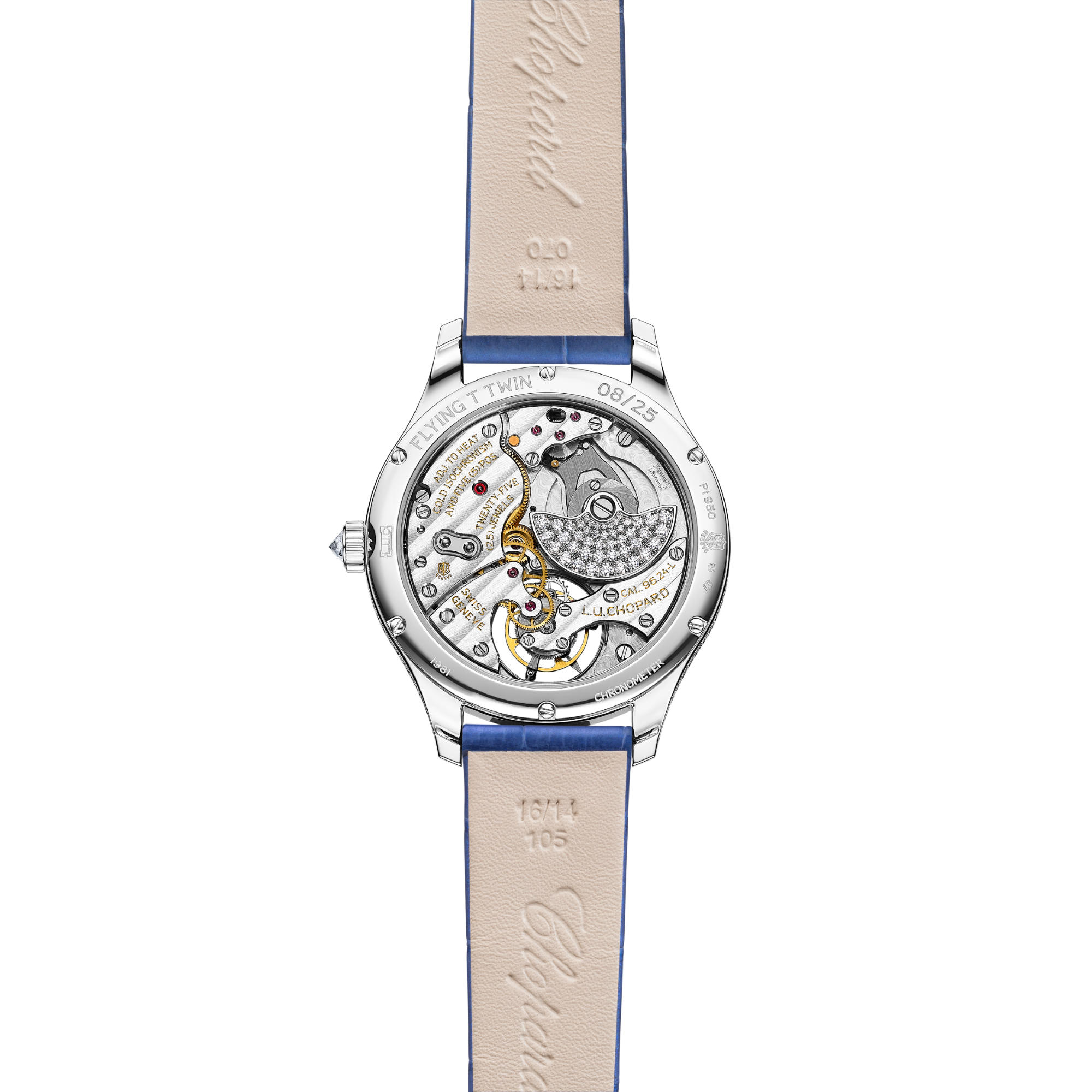 Ref. 131981-9001 - 2019 rundete die Chopard Manufacture ihr Repertoire an Komplikationen mit dem ersten automatischen Uhrwerk mit fliegendem Tourbillon ab, dem L.U.C 96.24-L. Dieses Kaliber mit Chopard Twin-Technologie mit zwei übereinanderliegenden Federhäusern und hochpräzisen Anpassungen sowie insbesondere einer Sekundenstoppfunktion treibt jetzt die beiden neuen L.U.C Flying T Twin Ladies Modelle an: eines aus 18 Karat ethischem Gold und eines aus Platin mit Diamantbesatz. Dank der zierlichen Proportionen der Uhrwerke haben diese beiden Zeitmesser einen Durchmesser von 35 Millimetern, der perfekt an das Handgelenk von Frauen passt. Mit ihrer außergewöhnlichen mechanischen und ästhetischen Veredelung sind diese beiden Uhren, die in einer limitierten Auflage von 25 Stück erhältlich sind, ein Sinnbild für das handwerkliche Können und die Motivation, welche die Artisans of Emotions der Chopard Manufacture inspiriert. Davon zeugen die Chronometer-Zertifizierung und die Genfer Punze.Ihr Ansprechpartner
