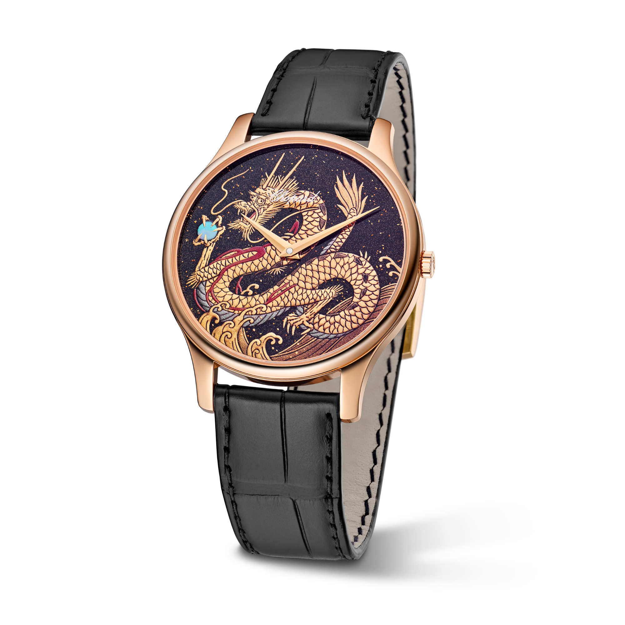 Ref. 161902-5079 - L.U.C XP Urushi Year of the Dragon von Chopard ist von chinesischen Traditionen inspiriert. In dem 39,5 mm großen Gehäuse in 18 Karat Ethischem Roségold arbeitet das hauseigene Manufakturkaliber L.U.C 96.17-L. Ein Mikrorotor trägt zur flachen Bauhöhe von nur 6,80 mm des Werks bei. Die Uhr verbindet die technische Expertise und das künstlerische Gespür der Chopard Manufacture. Denn das Zifferblatt ist ein kleines Kunstwerk, kunstvoll mit Urushi-Lack, Goldstaub und Perlmutteinlagen verziert. Bereits zum zwölften Mal lässt Chopard ein solches Urushi-Zifferblatt von einem weltbekannten japanischen Künstler fertigen, der auf die Maki-e Technik spezialisiert ist.Ihr Ansprechpartner