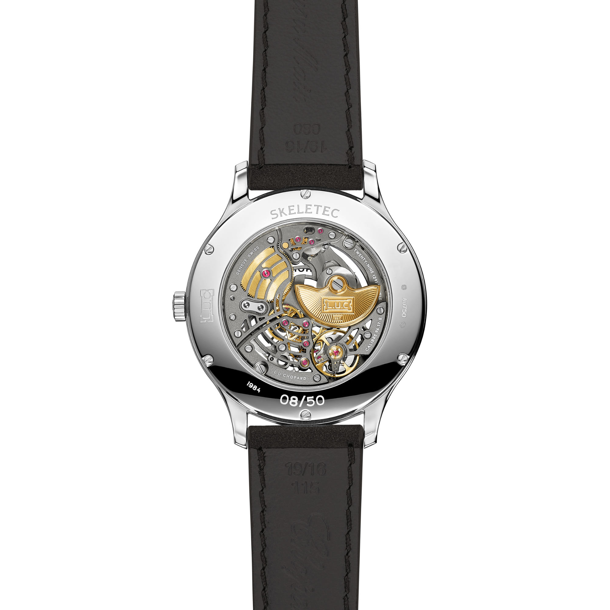 Ref. 161984-1001 - Die L.U.C XP Skeletec gehört zu den weltweit flachsten und am schönsten verarbeiteten skelettierten Uhren mit Handaufzug. Zum 25. Jubiläum der Chopard Manufacture präsentiert sie sich in neuer Eleganz. Neben ihrer geringen Höhe von nur 7,2 mm wird sie seit ihrer Präsentation im Jahr 2012 auch aufgrund ihrer Verbindung von technischer Exzellenz und handwerklicher Perfektion bewundert. Durch die Überarbeitung des Designs verleiht Chopard Manufacture diesem Meisterwerk eine frische Eleganz mit einem noch offeneren Zifferblatt zur Präsentation des Uhrwerks L.U.C 96.17-S, einer verfeinerten Ästhetik und einem Gehäuse aus ethischem 18 Karat Weißgold. Die L.U.C XP Skeletec wurde vollständig im Haus gefertigt, speziell die Skelettierung wurde von Hand in den Ateliers des Hauses in Fleurier ausgeführt. Sie gehört zu den diskretesten Repräsentanten der hohen Uhrmacherkunst von Chopard.Ihr Ansprechpartner