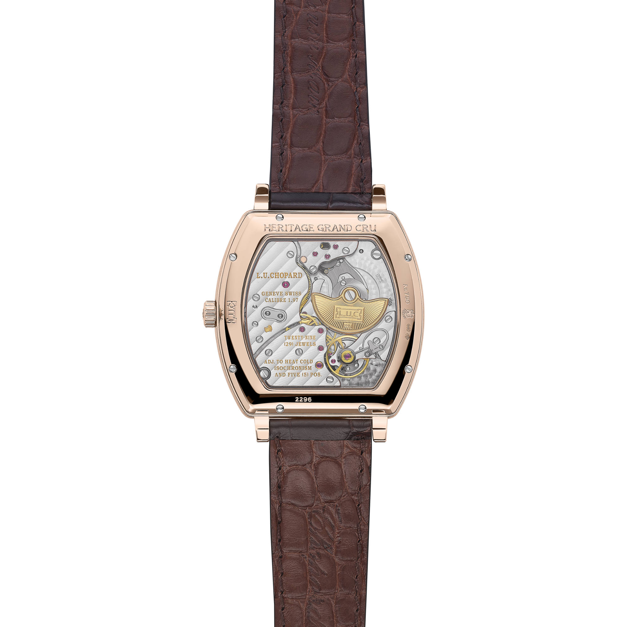 Ref. 162296-5001 - Chopard bereichert sein Sortiment um einen Chronometer in Tonneau-Form aus 18 Karat Roségold. Er wurde entworfen wie ein Ausnahmewein und stützt sich auf das Beste des uhrmacherischen Know-hows von Chopard. Die L.U.C Heritage Grand Cru besticht mit ihrem besonders flachen, anmutig geformten Design und ihrer besonderen Eleganz. Darüber hinaus ist sie eine der wenigen Uhren in Tonneau-Form mit einem Automatikwerk in derselben Form, dem L.U.C 97.01-L. Sie ist eine Referenz an die von Louis-Ulysse Chopard entworfenen Taschenuhren. Ebenso wie edler Wein klassifiziert und zertifiziert wird, wurde diese herausragende handwerkliche Kunstwerk mit der Genfer Punze und die Präzision als Chronometerklassifizierung von der COSC ausgezeichnet. Es ist mit der Twin-Technologie von Chopard ausgestattet und bietet daher eine angenehme Autonomie von 65 Stunden. Die L.U.C Heritage Grand Cru ist in vielerei Hinsicht einzigartig und adelt einen anspruchsvollen Mann, der edle Weine und herausragenden Uhren sammelt: ein moderner Genussmensch, der Chopard Gentleman von heute.Ihr Ansprechpartner