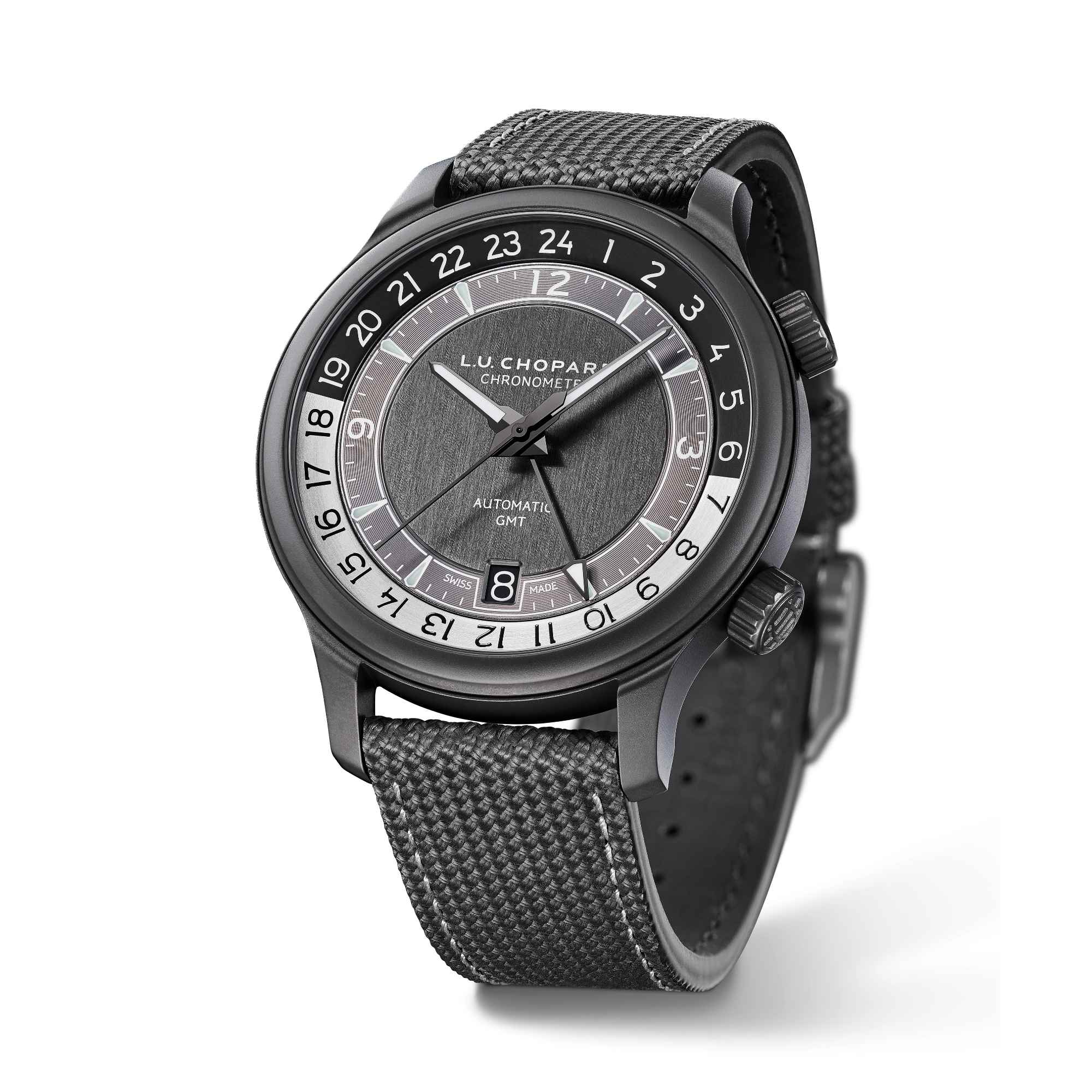 Ref. 168579-3004 - Die neue L.U.C GMT One Black wurde für moderne Reisende und echte Weltbürger konzipiert und bietet eine coole, monochrome Version einer Reiseuhr mit zwei Zeitzonen. Ihr leichtes, besonders robustes Gehäuse aus keramisiertem Titan sowie der graue Farbton auf schwarzem Hintergrund machen sie zur idealen Uhr, um dem anspruchsvoll hektischen Leben der neuen Generation von Gentleman-Reisenden zu entsprechen. Gemeinsam mit der neuen Weltzeituhr L.U.C Time Traveler One Black ist es die weltweit erste Reiseuhr, die dieses fortschrittliche Gehäusematerial nutzt und der Handwerkskunst der L.U.C-Uhrmacher von Chopard damit einen modernen Charkter verleiht. Sie überzeugt mit dem berühmten Chronometer-zertifizierten Chopard-Kaliber L.U.C 01.10-L.Ihr Ansprechpartner