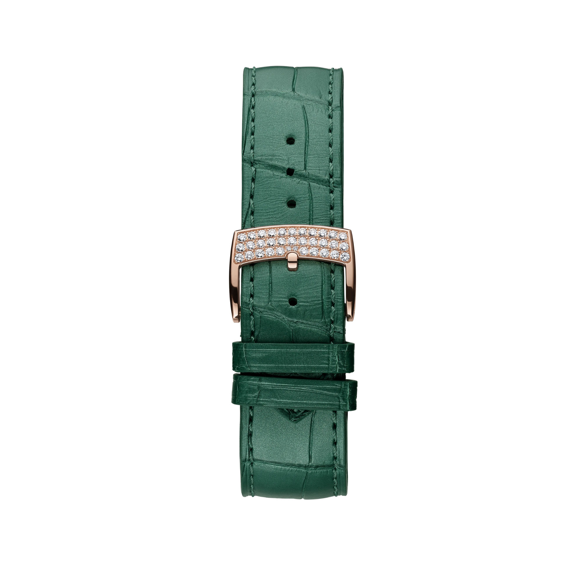 Grünes Alligatorlederarmband mit Dornschließe aus Roségold mit Diamanten
