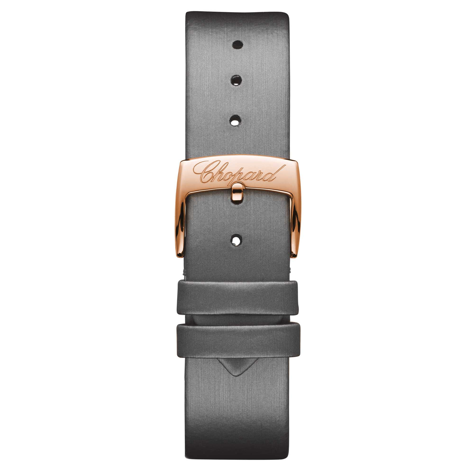 Ref. 274808-5014 - Chic und feminin – die Uhr Happy Sport 36 mm Automatic aus Roségold ist mit einem mechanischen Uhrwerk mit Automatikaufzug und 42 Stunden Gangreserve ausgestattet. Als wahre Ode an die Lebensfreude verfügt dieser neue Zeitmesser mit seinem zierlichen 36-mm-Gehäuse über ein feines elegantes gebürstetes graues Guilloche-Zifferblatt und über eine mit Diamanten besetzte Lünette sowie über ein passendes aufgerauhtes graues Stoffarmband. Als stilvolles Sinnbild der Freiheit ist die Happy Sport eine Talismanuhr für freigeistige Damen.Ihr Ansprechpartner