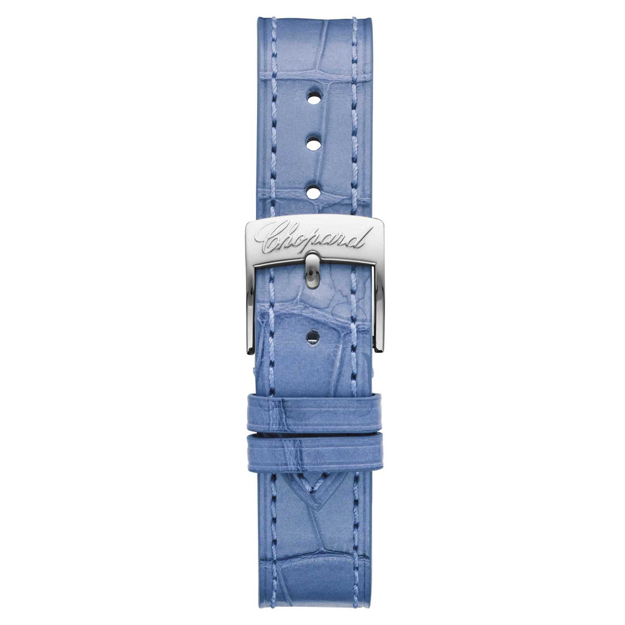Ref. 278573-3010 - Chic und feminin - die Happy Sport Uhr aus Edelstahl hat ein neues im Haus gefertigtes Automatikwerk, das in der Chopard Manufaktur entwickelt wurde, um das 25-jährige Jubiläum der Happy Sport zu feiern. Das Edelstahlgehäuse, das perfekt die Philosophie von Chopard widerspiegelt, umschließt das seidig schimmernde fein strukturierte Perlmuttzifferblatt in Hellblau. Das Lederarmband ist farblich passend dazu.Ihr Ansprechpartner