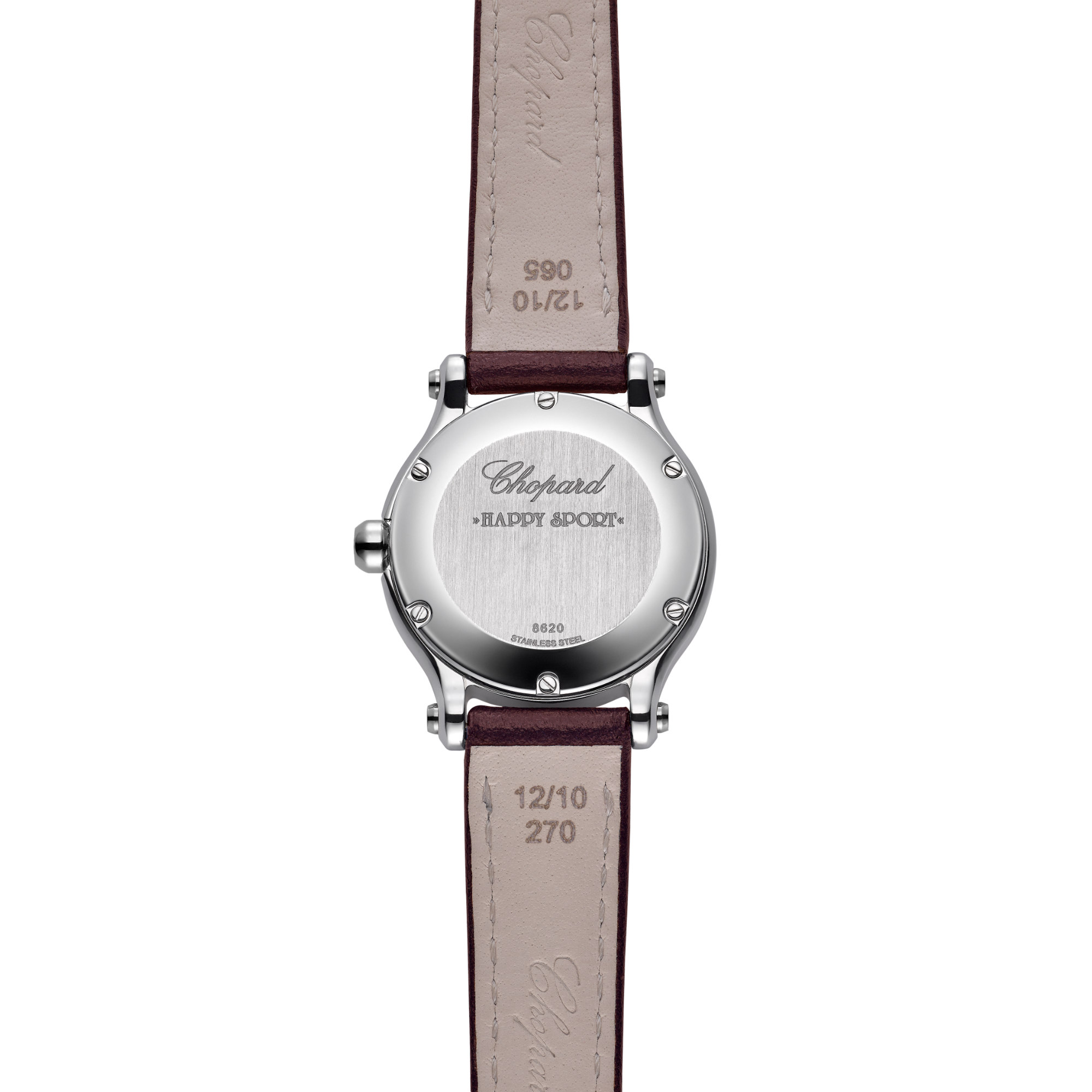 Ref. 278620-3004 - Die Happy Sport Damenuhren mit ihren tanzenden Diamanten verkörpern die Kreativität und Kühnheit von Chopard. Die verspielten, frei beweglichen Diamanten dieser Uhr in Roségold und Lucent Steel™ tanzen zwischen zwei Saphirgläsern. Seit 1993 beflügeln sie die Fantasie. Chopard war damals das erste Unternehmen, das Lucent Steel™ mit Diamanten kombinierte. Little Diamonds Do Great Things