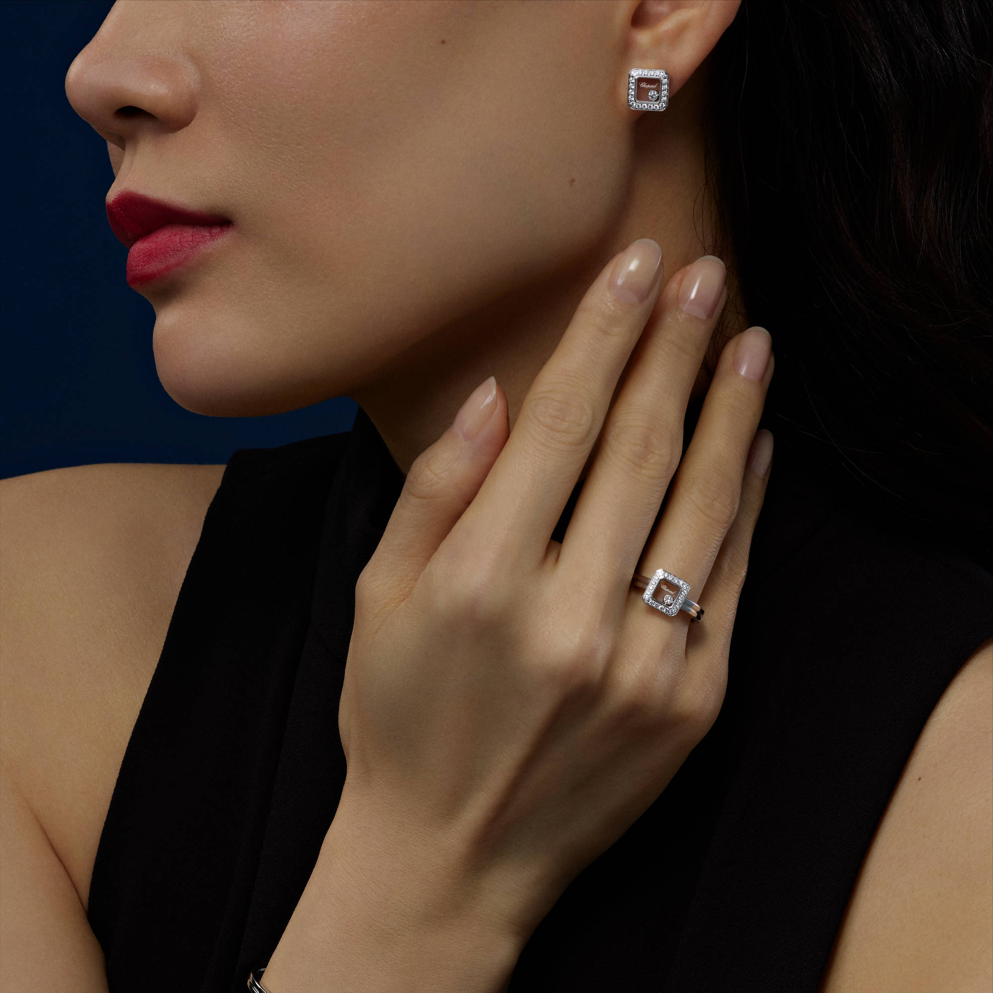 Ref. 83A114-1201 - Happy Diamonds Schmuckkreationen sind so einzigartig wie verspielt. Die tanzenden Diamanten bewegen sich völlig frei zwischen zwei Saphirgläsern, wodurch sie ihr ganzes Funkeln entfalten können. Little Diamonds Do Great Things.