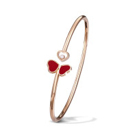 Ref. 85A083-5800 - Zwei rote Herzen, die wie Schmetterlingsflügel gesetzt sind, hängen von einem Herz mit einem tanzenden Diamanten. Die Umrisse seiner Flügel malen ein Herz in die Luft. Kreationen von Happy Hearts Wings sind Talismanschmuck, den man direkt auf der Haut trägt.