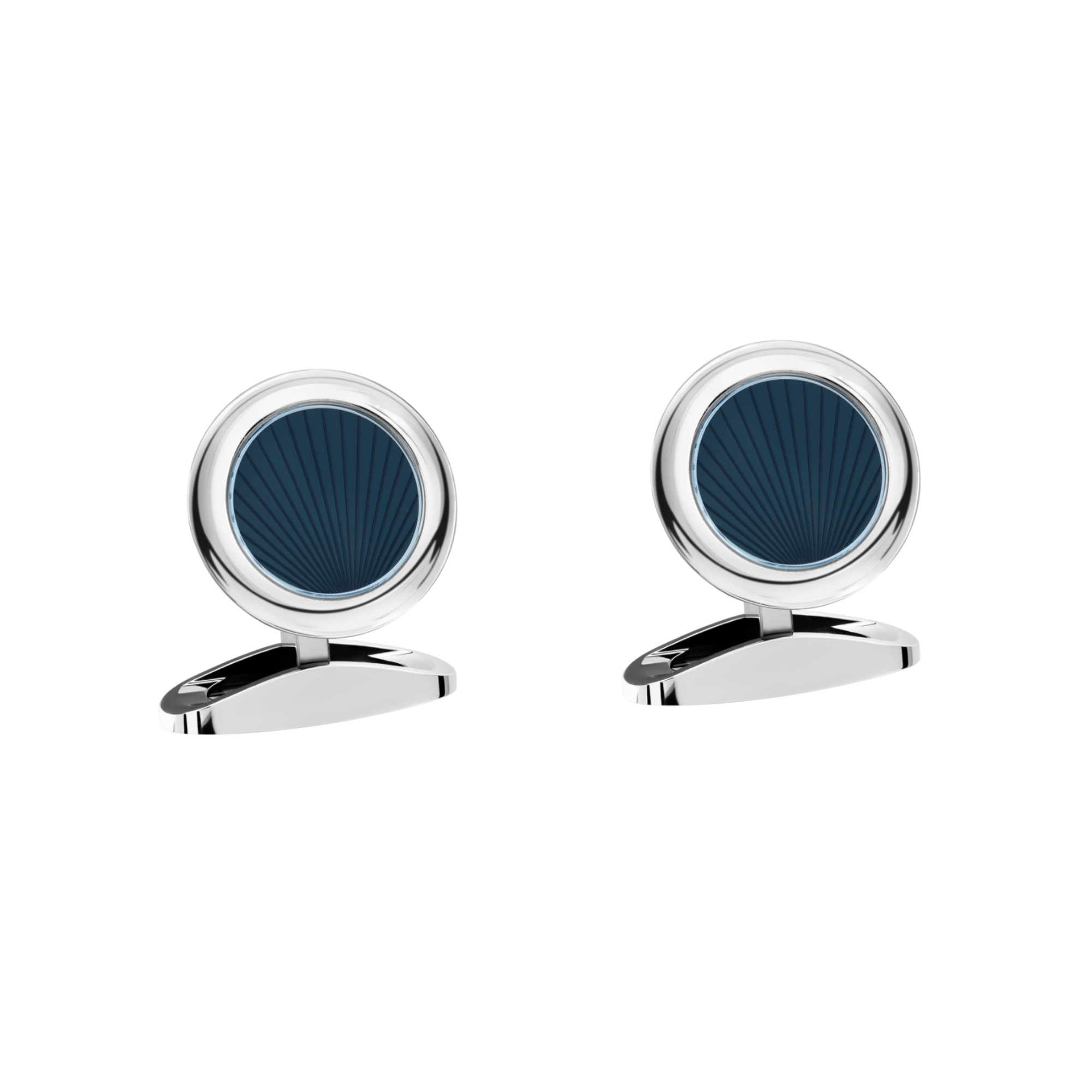 Ref. 95014-0121 - Werten Sie Ihre formelle Garderobe mit unseren vornehmen L.U.C Manschettenknöpfen in poliertem Edelstahl auf. Die faszinierende marineblaue Intarsie auf jedem Knopf erinnert an die ikonischen Design-Codes unserer L.U.C Uhren und verströmt einen Hauch von Raffinesse. Diese exquisite Verzierung wird von einem Saphirglas sorgfältig geschützt, das für unvergleichliche Klarheit und Brillanz mit einer sechslagigen, antireflektierenden Beschichtung versehen ist. Diese Manschettenknöpfe sind die perfekte Mischung aus Präzision, Tradition und raffinierter Eleganz für den anspruchsvollen Gentleman.