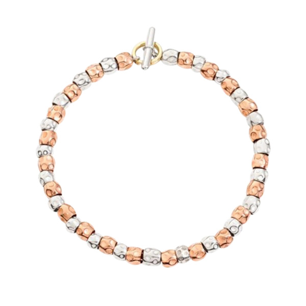Ref. DBB9005-GRANE-MIX9A - Armband Granelli aus 925er Silber und 9-karätigem Roségold, Kette aus 925er Silber mit Spaltring aus 18-karätigem Gelbgold. Nadel aus 925er Silber inklusive.Ihr Ansprechpartner