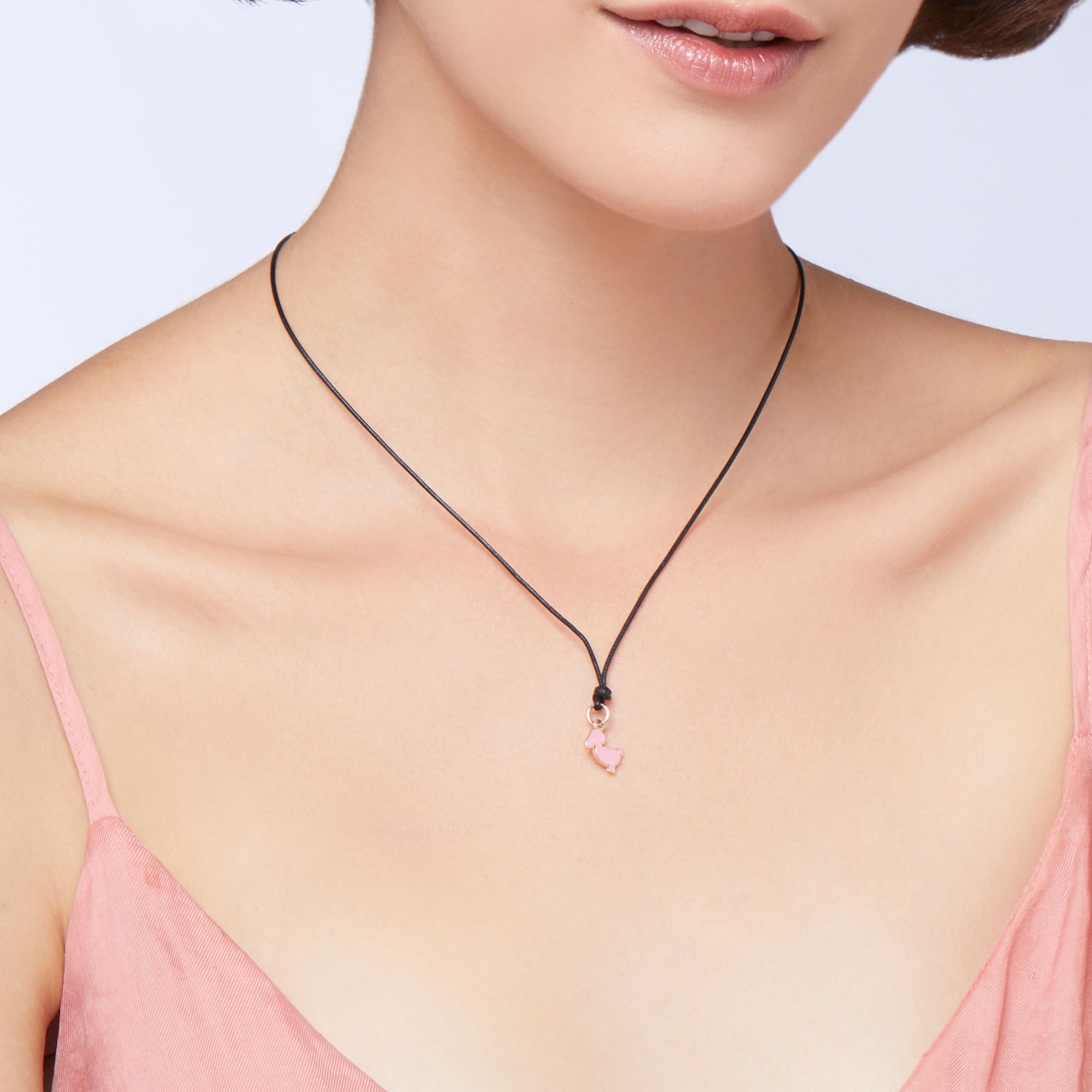 Ref. DMB5002-JUNIS-ERS9R - DU HAST FLIEGEN GELERNT. - Süßer geht nicht. Anhänger aus 9-karätigem Roségold mit rosa Emaillierung. Schwarze Kordel inklusive.Ihr Ansprechpartner