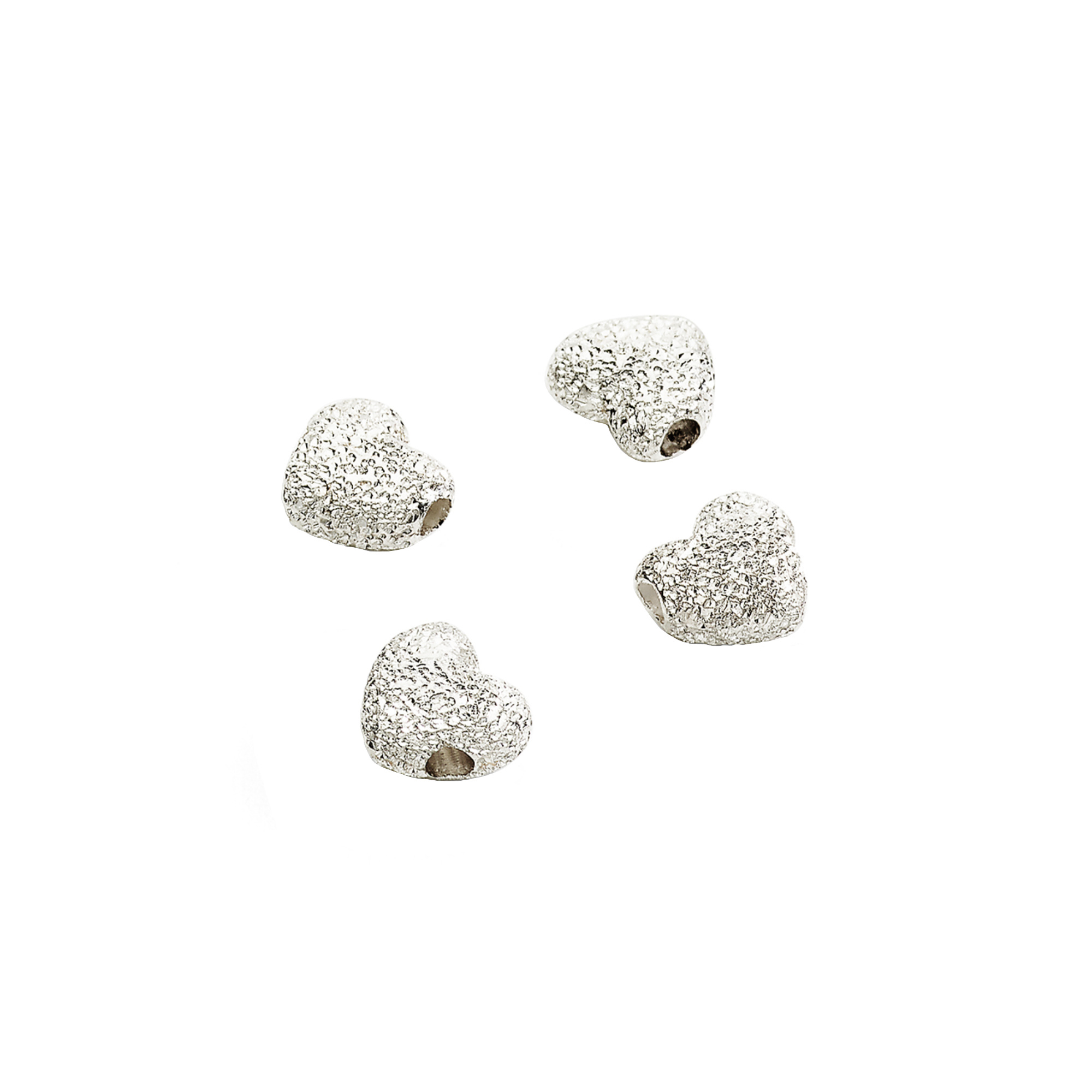 Ref. DUC6001-HEART-000AG - Vier Herzen aus Sterlingsilber mit handgearbeitetem Diamantschliff. Durch Protofusion und Feinguss im Wachsausschmelzverfahren gefertigt, innen ausgehöhlt für Leichtigkeit, gehärtet zur Formstabilität und versilbert für gleichmäßigen Glanz.Ihr Ansprechpartner