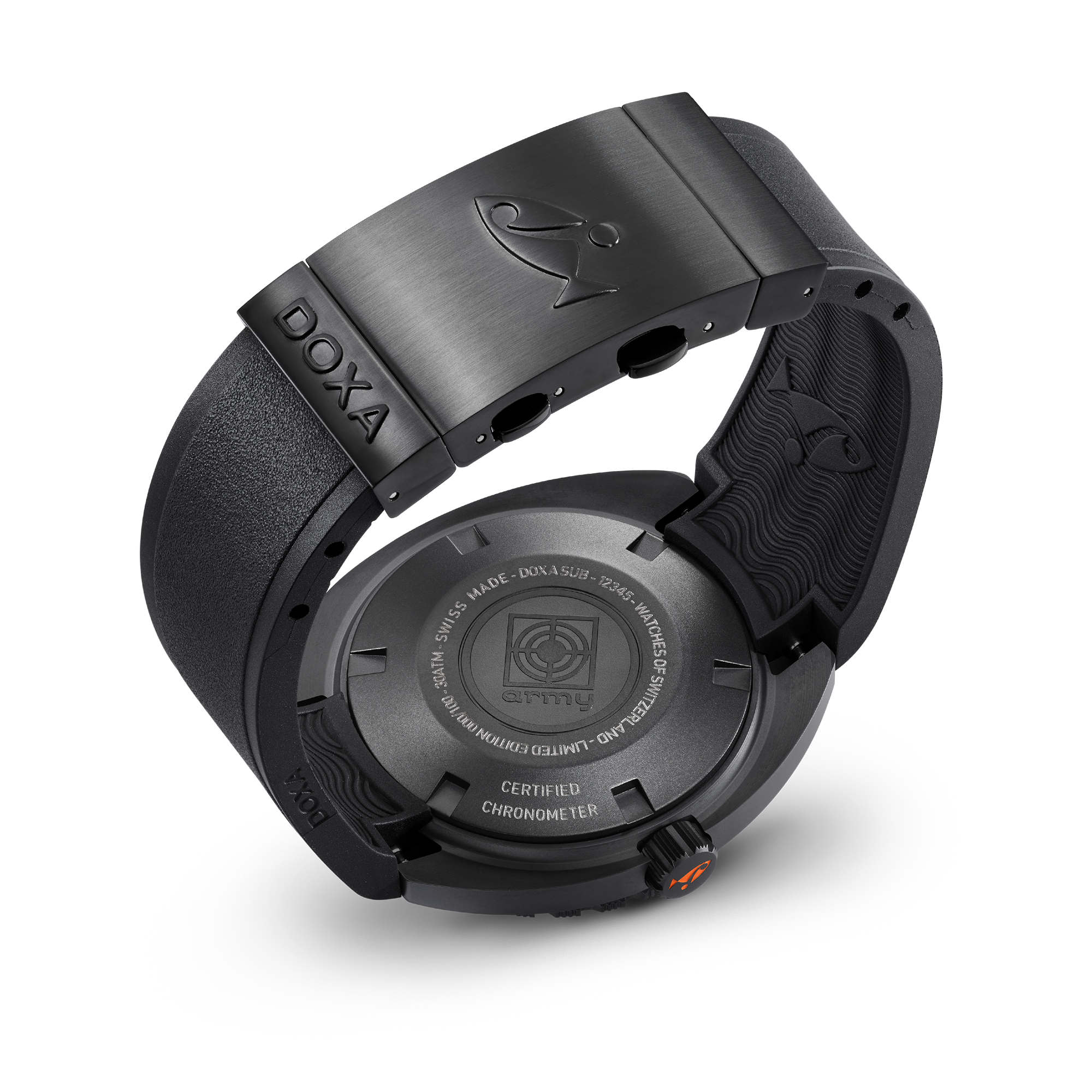 Heute, über 50 Jahre nach der Premiere, bringt DOXA das Modell Army zusammen mit seinem angloamerikanischen Partner „The Watches of Switzerland“in limitierter Auflage mit lediglich 100 Exemplaren neu heraus.
