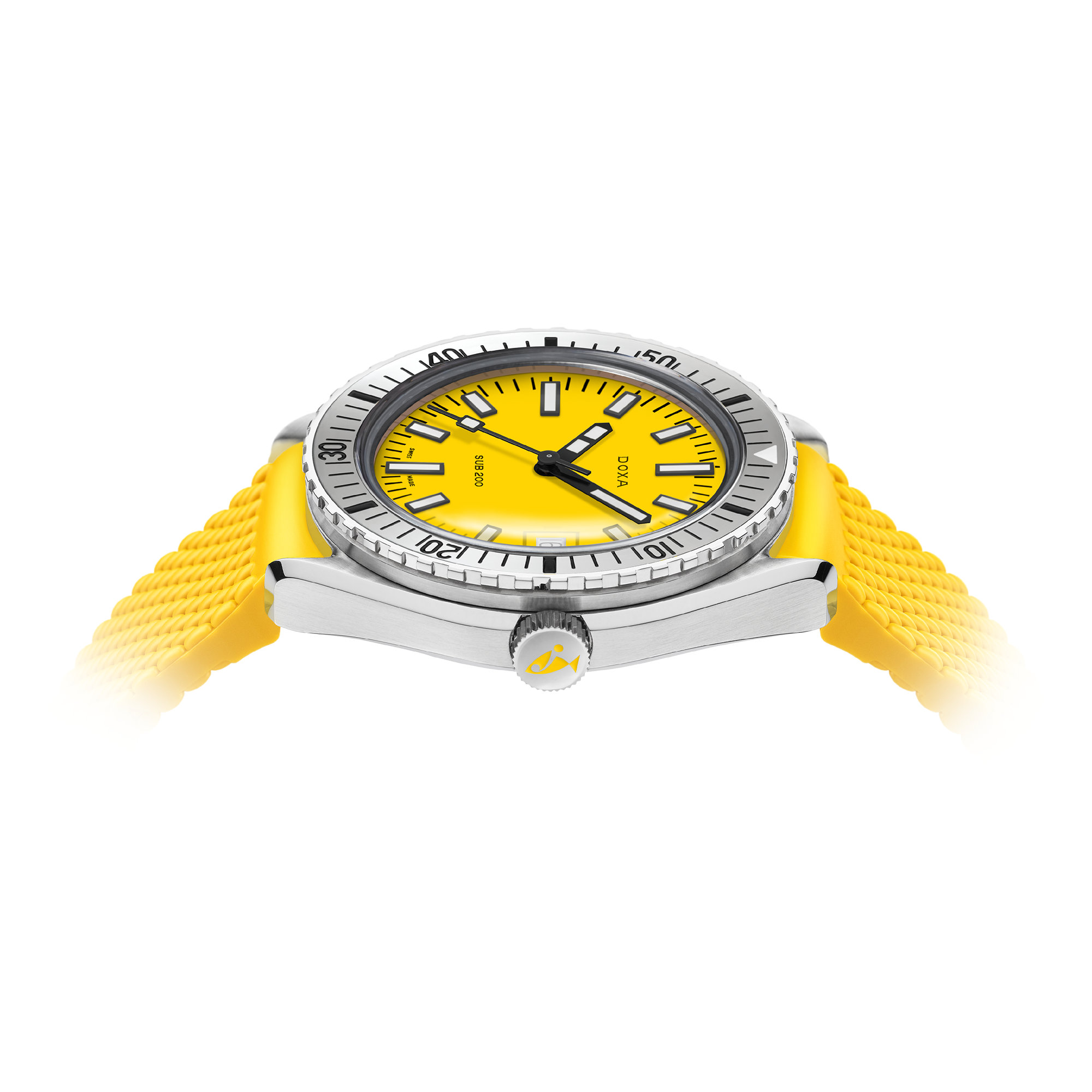 Ref. 796.10.361.31 - Diese auf der Baselworld 2019 eingeführten 3-Zeiger-Taucheruhr hat ein Gehäuse aus hochwertigem 316L-Edelstahl mit einem Durchmesser von 42 mm. Das kratzfeste, entspiegelte Saphirglas der SUB 200 besticht durch die markante Wölbung des damals verwendeten Plexiglas. Das Modell ist bis zu einer Tiefe von 200 Metern (20 bar) wasserdicht und verfügt über eine einseitig drehbare Lünette. Sämtliche Elemente, die Tauchinformationen liefern, einschließlich auf der Lünette, sind mit einer Super-LumiNova®-Leuchtbeschichtung versehen.