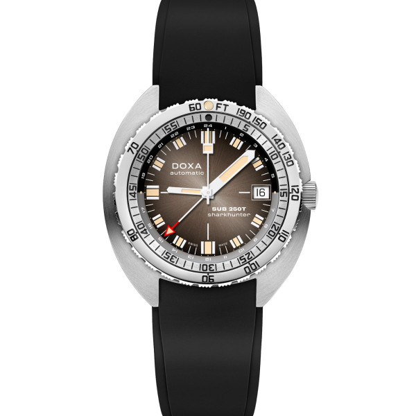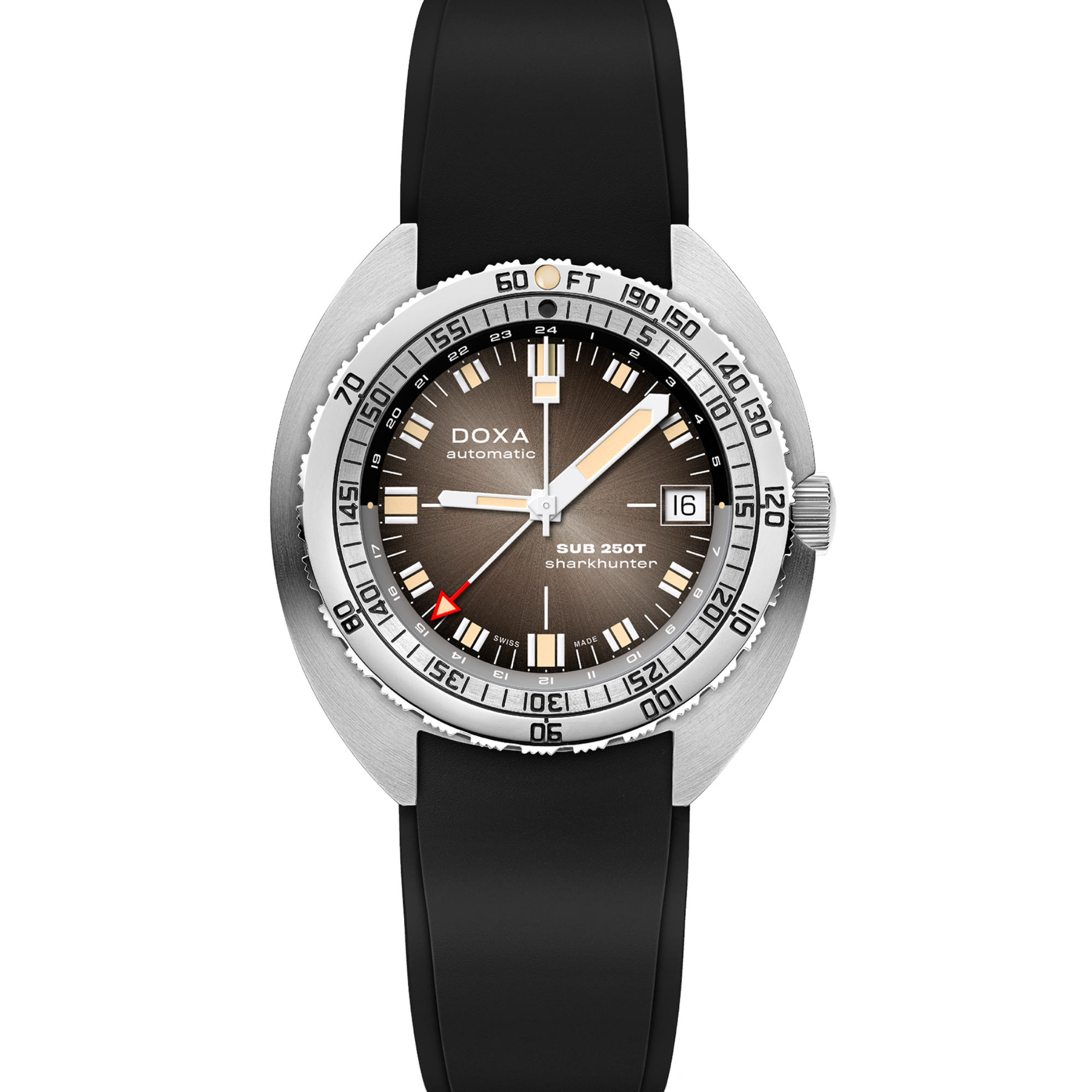 Ref. 855.10.101V.20 - Die SUB 250T GMT markiert DOXAs Rückkehr zur GMT-Funktion und vereint die Robustheit einer Taucheruhr mit der Weltzeitfunktion. Ihr 40-mm-Gehäuse aus Edelstahl bietet die perfekte Balance zwischen Präsenz am Handgelenk und Tragekomfort, während die verschraubte Krone und die einseitig drehbare Lünette mit Tauchskala eine professionelle Leistung gewährleisten. Mit einer Wasserdichtigkeit von 250 Metern (820 Fuß) ist sie sowohl für Unterwasserabenteuer als auch für weltweite Reisen ausgelegt.