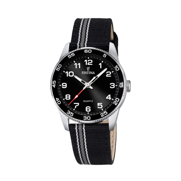 Ref. F16906/4 - JUNIOR - Die erste 'echte' Uhr - FESTINA bietet eine komplette Uhrenlinie für die jüngsten Fans der Marke. Dreizeiger- oder Chronographen-Quarzwerke, Edelstahl 316L, wasserdicht bis 5 BAR, mit Stahl- oder Lederband. Alle diese Modelle bieten einen sportlichen Stil mit einem hohen Maß an Verarbeitung.