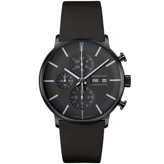 Ref. 27/4371.03 - Klare Formen und eine ausdrucksstarke Farbgebung sind die Merkmale der FORM A Chronoscope. Das Zusammenspiel von matten und polierten Flächen in tiefem Schwarz erzeugen eine spannungsvolle Dynamik. Die Akzente in Gelb, Grau oder Orange sind von einem Kunstwerk des britischen Künstlers Richard Macneil inspiriert, das sich als farblich adaptierter Glashinterdruck auf dem Gehäuseboden wiederfindet. Der mechanische Chronograph ist mit einem flachem Saphirglas ausgestattet und bis 5 bar wasserdicht.