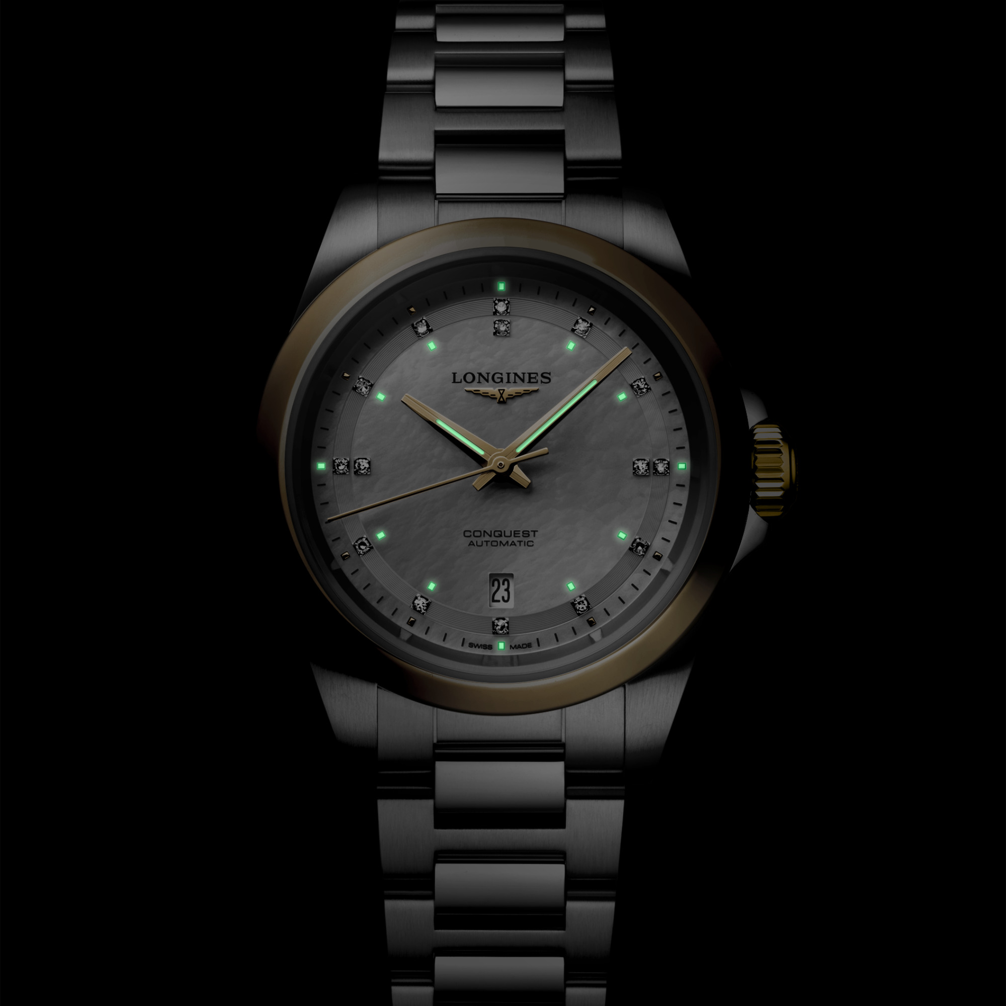 Ref. L3.320.5.80.6 - Die Conquest, die ultimative Uhr für jeden Tag, war auch die erste Longines Kollektion, deren Name 1954 durch das Eidgenössische Institut für Geistiges Eigentum geschützt wurde. Seitdem hat sich die Kollektion durch Design und Technologie weiterentwickelt, ist aber ihrer ursprünglichen Identität treu geblieben und strahlt eine harmonische Mischung aus Kühnheit, zeitgenössischem Design und sportlicher Eleganz aus. Jede Conquest Uhr zeigt das unermüdliche Engagement von Longines für Leistung und uhrmacherische Exzellenz. Mit ihrem vielseitigen Angebot steht die Reihe Conquest für das Engagement von Longines, Uhren für jede Facette des Lebens zu kreieren. Die Kollektion ist in einer Reihe von Größen, Materialien und Farben erhältlich.Ihr Ansprechpartner
