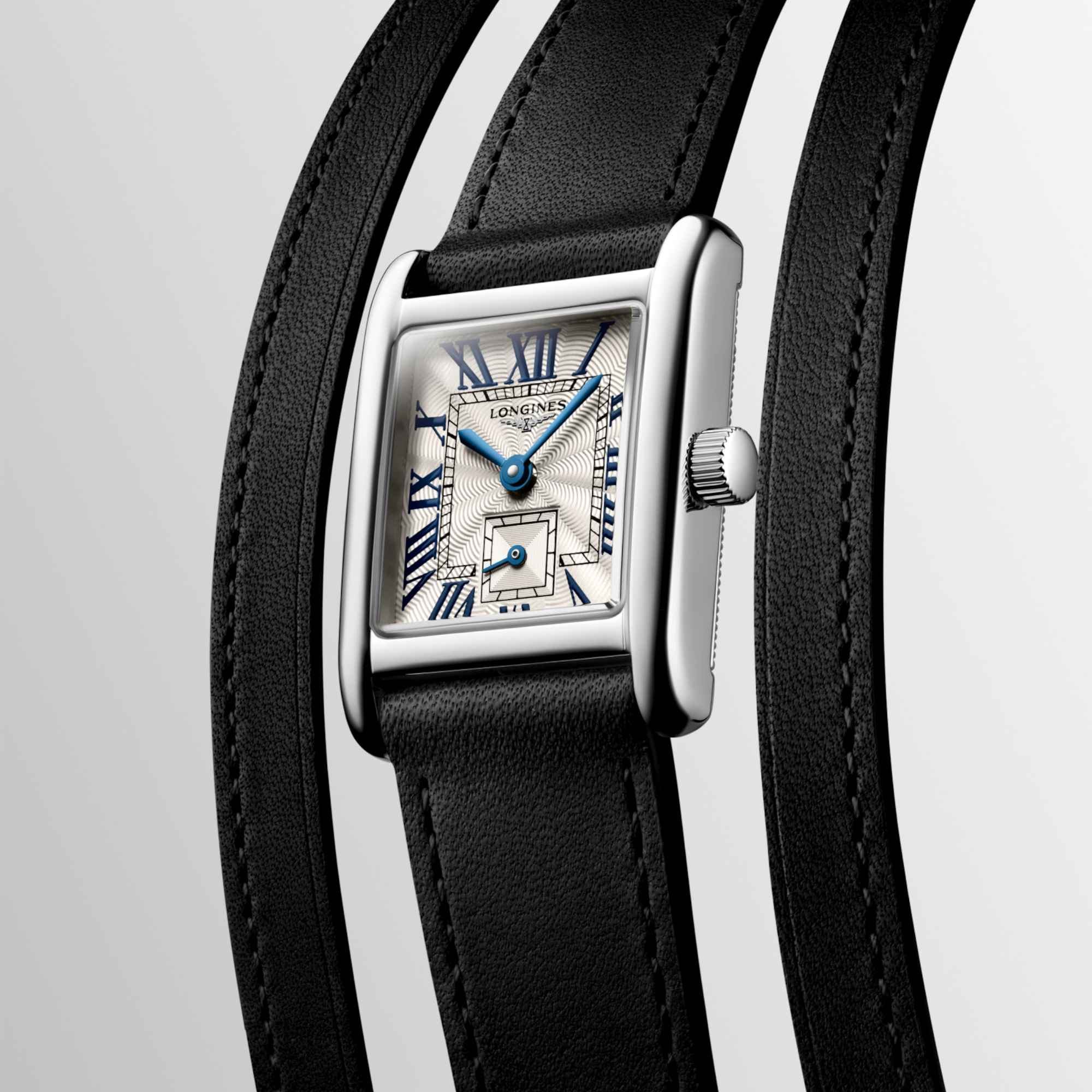 Ref. L5.200.4.71.0 - Die Mini DolceVita ist mit neuen Lederarmbändern in einem exklusiven Longines Design ausgestattet.Dieses Modell gibt es jetzt in Orange, mit einem rechteckigen 21,50 mm x 29,00 mm großen Edelstahlgehäuse, ausgestattet mit einem hochpräzisen L178 Quarzwerk, das bis zu einem Druck von 3 bar (30 Meter) wasserdicht ist. Dieses Modell mit einem versilberten römischen Flinqué-Zifferblatt mit aufgemalten römischen Ziffern wird mit einem eleganten Doppeltour-Armband aus schwarzem Nappaleder mit Dornschließe aus Edelstahl geliefert.Ihr Ansprechpartner
