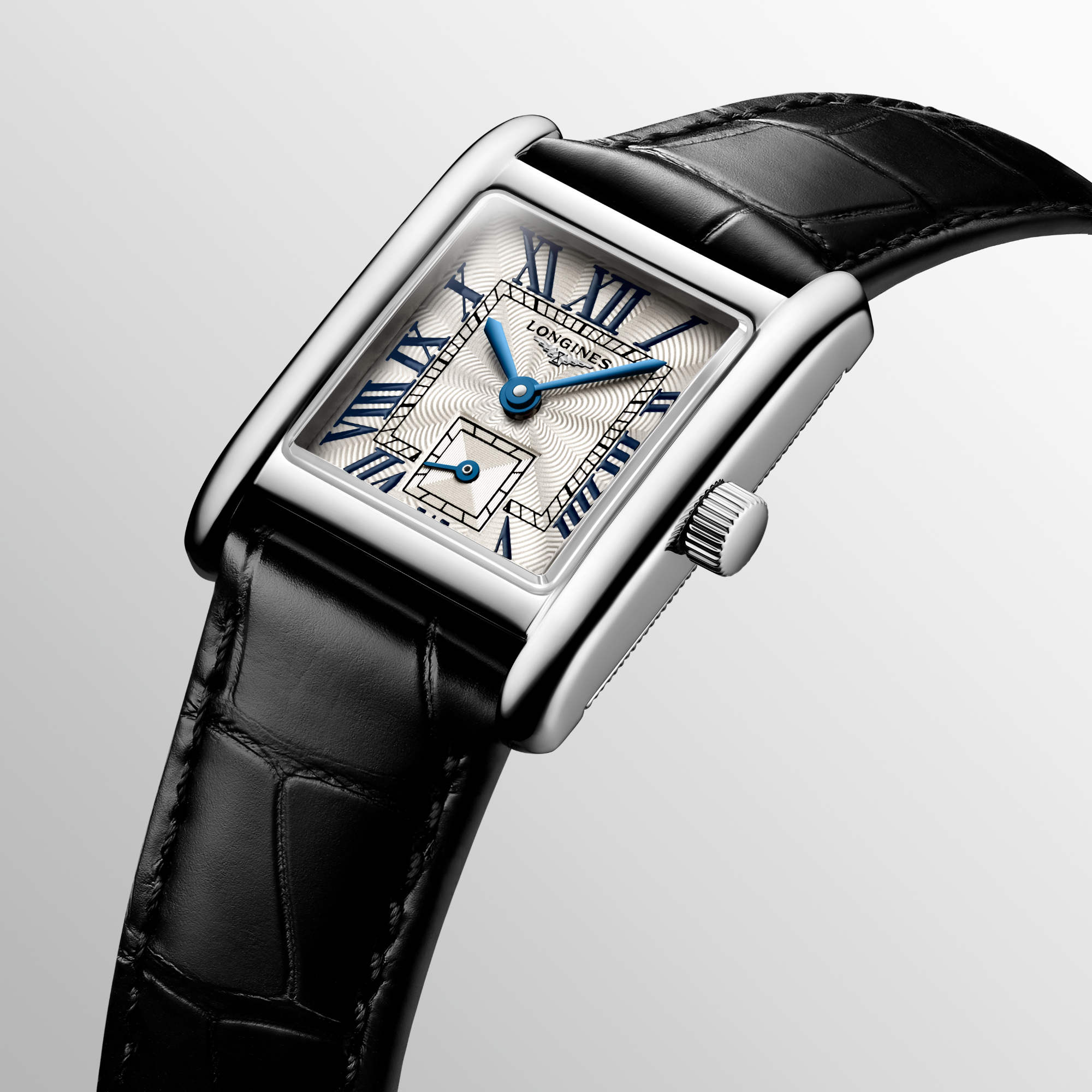 Ref. L5.200.4.71.2 - Die Mini DolceVita mag zwar klein sein, aber dafür kündigt sie ihre Ankunft umso größer an. Mit ihrem dezenten Profil, dem klassischen Design und den ästhetischen Variationen, die zugleich modern und zeitlos sind, ist sie ein kleines, aber mächtiges Meisterstück, das den unaufdringlichen Luxus und die zeitgenössische Eleganz von Longines gleichermaßen hervorragend zum Ausdruck bringt. Jede Referenz der Mini DolceVita Kollektion besitzt ein rechteckiges 21,50 mm x 29,00 mm großes Edelstahlgehäuse und wird von einem höchst präzisen L178 Quarz-Uhrwerk angetrieben. Das rechteckige silberfarbene römische Zifferblatt im Inneren des Gehäuses unterstreicht die unnachahmliche Eleganz der Uhr. Die Uhr ist sowohl mit Alligator-Lederarmband als auch mit einem neu kreierten Edelstahlarmband erhältlich, das mit seinen 198 Gliedern den edlen Charakter der Uhr hervorhebt und einen hervorragenden Tragekomfort bietet.Ihr Ansprechpartner