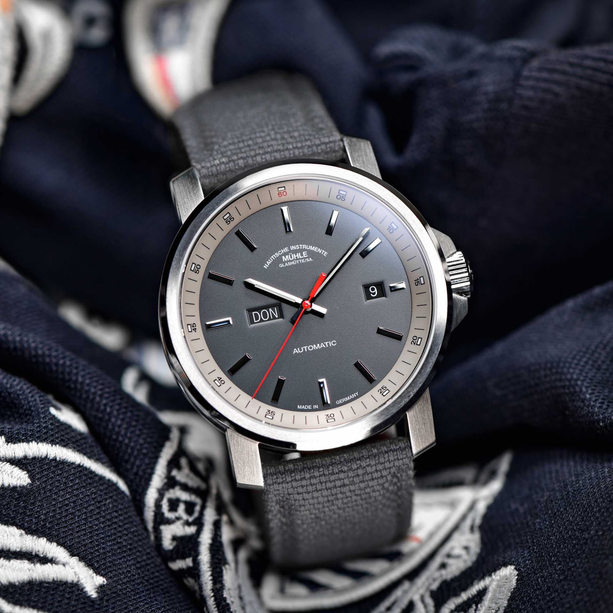 Ref. M1-25-34-CB-V - Die Balance muss stimmen. Das gilt nicht nur für den 29er als Segeljolle, sondern auch für die 29er Tag/Datum. Wenn der Wind richtig im Segel zerrt und der Vorschoter mit ganzem Gewicht im Trapez der schnellen Jolle hängt, entscheidet die richtige Balance über Sieg oder Niederlage. Ebenso wichtig war uns das ausgewogene Verhältnis von Datums- und Wochentagsanzeige bei der Entwicklung der 29er Tag/Datum. Diese wurden bei 3 und 9 Uhr platziert und unterstreichen so den Charakter der 29er.