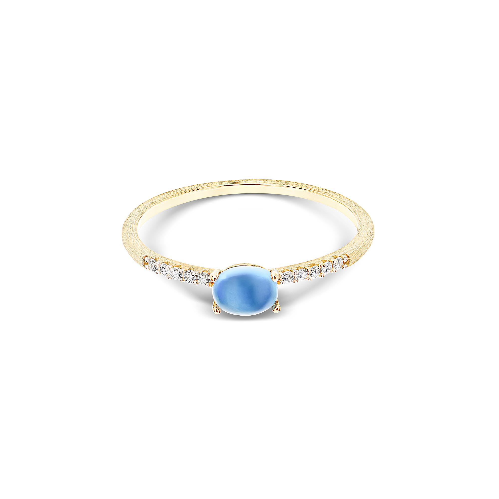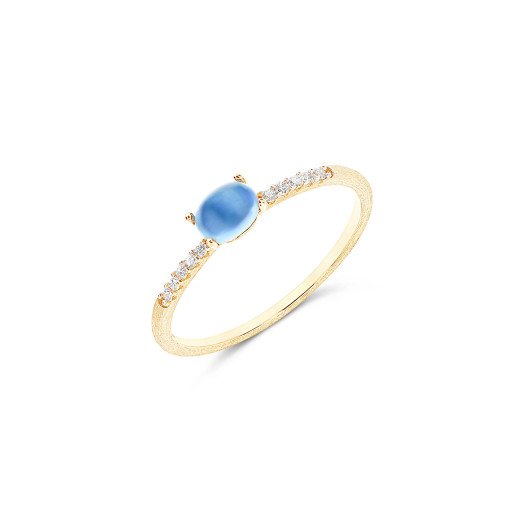 Ref. AS36-597 - Eine kleine Kugel, die euch in das “In Blau gemalte Blau“ tragen wird! Dieser Ring von minimalem Design, aus 18kt Gold, Diamanten und London Blue Topas gefertigt, passt perfekt zu den Farbtönen von Jeans, wodurch er perfekt für einen legeren Look ist, aber nicht nur.