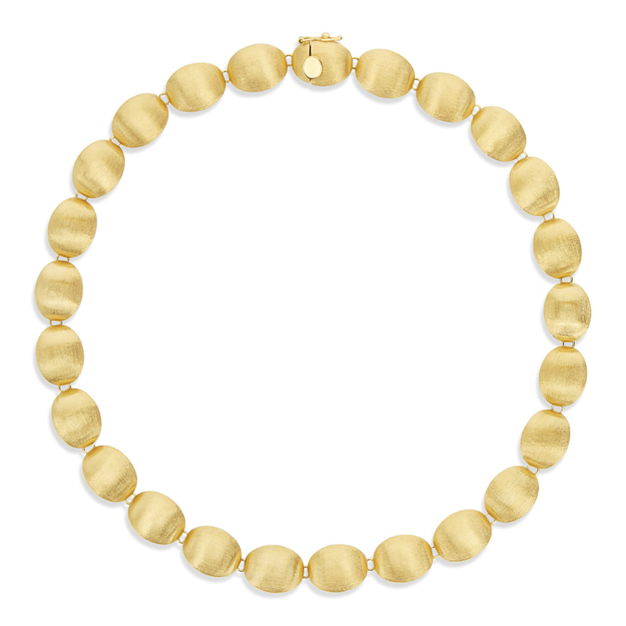 Ref. CI1-538 - Der Kultfaktor der Perle begegnet handgraviertem 18kt Gold in der Kollektion Muse, welche die großen inspirierenden Musen der Vergangenheit zelebriert. Diese eng anliegende Halskette, eine Reinterpretation der klassischen Perlenkette, verleiht jedem Look einen Hauch Eleganz und starke Persönlichkeit. Mit ihrem minimalistischen und raffinierten Design erzählt diese Kreation eine Geschichte von ausgesuchter Schönheit und zeitlosem Wagemut, und macht sie perfekt für jeden Anlass. Lauras Ratschlag? Tragen Sie die Halskette Muse in der kleinen Ausführung entweder alleine oder fügen Sie die bunten Charms der Kollektion Boules hinzu, um sie ganz nach Ihrem einzigartigen Stil zu personalisieren.