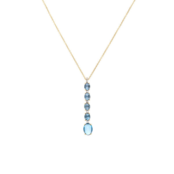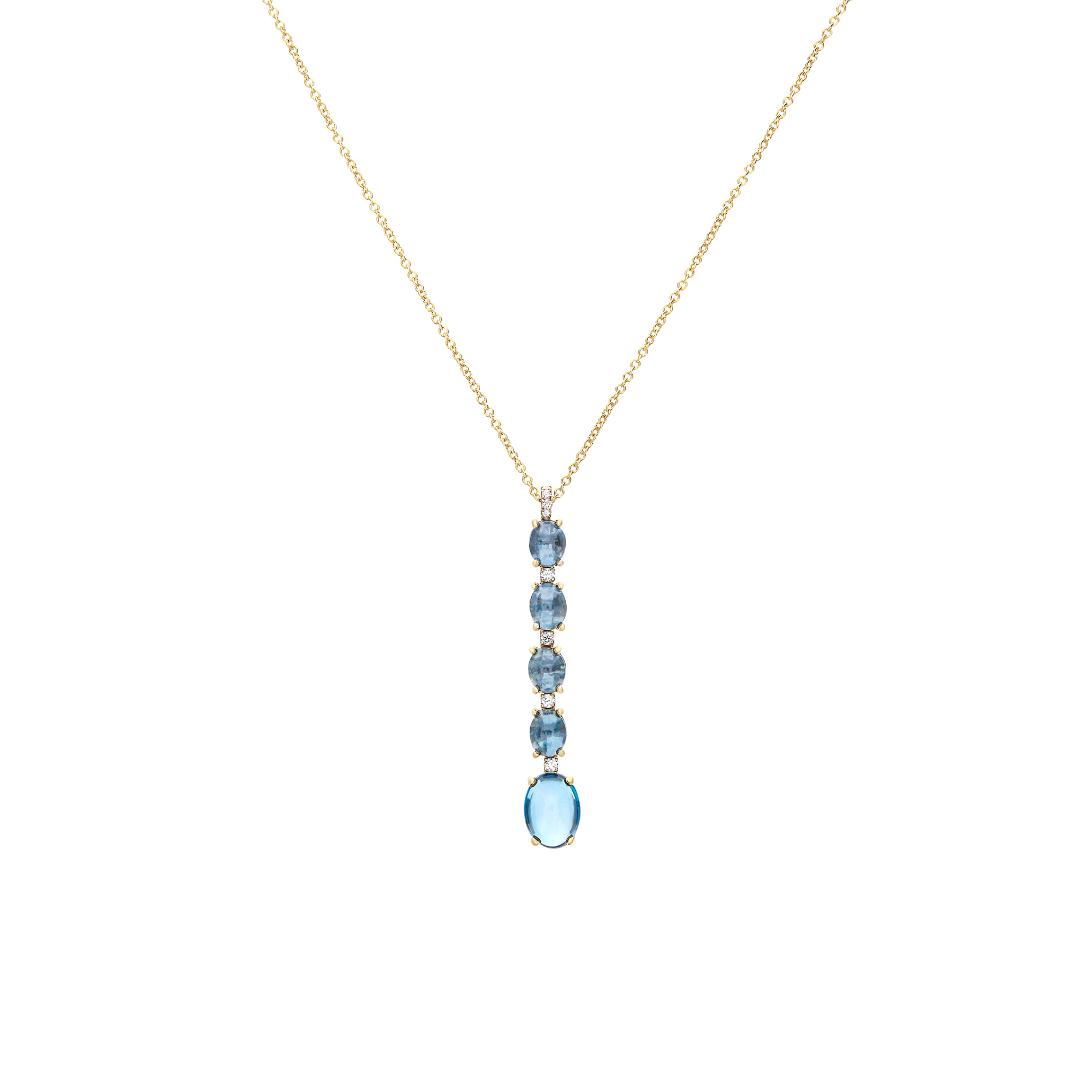 Ref. CS21-597 - Raffinierte Halskette aus 18kt Gold und London Blue Topas, gekrönt mit eleganten Diamantdetails. Ein Schmuckstück, dessen Farben an die des Ozeans erinnern, und von den geschickten Händen der Nanis Handwerker das vollständig von Hand gefertigt wurde.