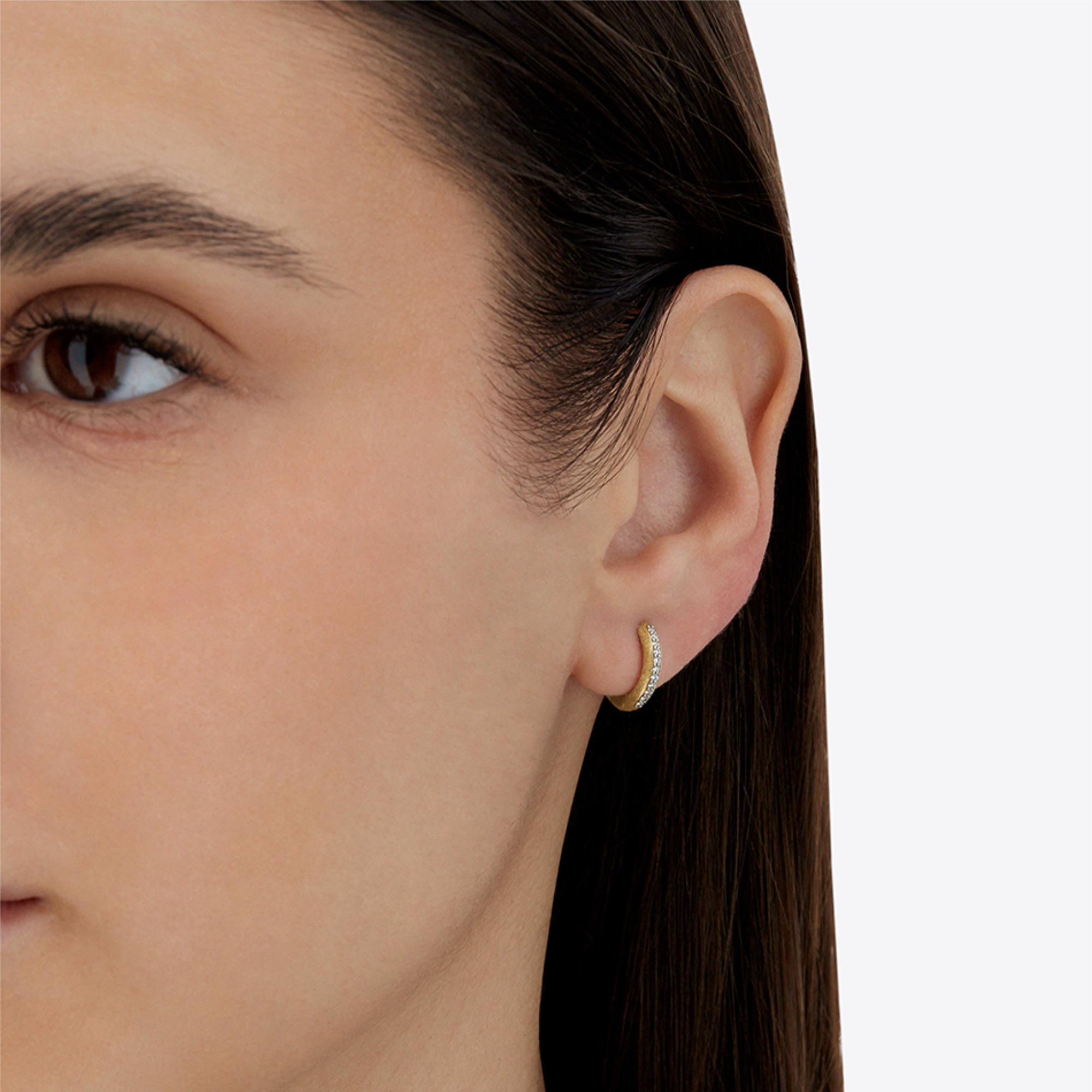 Ref. OS10-602 - So unverzichtbar wie unverwechselbar: diese Creolen aus 18kt Gold und Diamanten, von unseren Goldschmieden handgraviert, eignen sich perfekt für jeden Look! Lauras Ratschlag? Spielt mit diesem Schmuckstück, und wenn ihr mehrere Ohrlöcher habt, kombiniert verschiedene Modelle miteinander!
