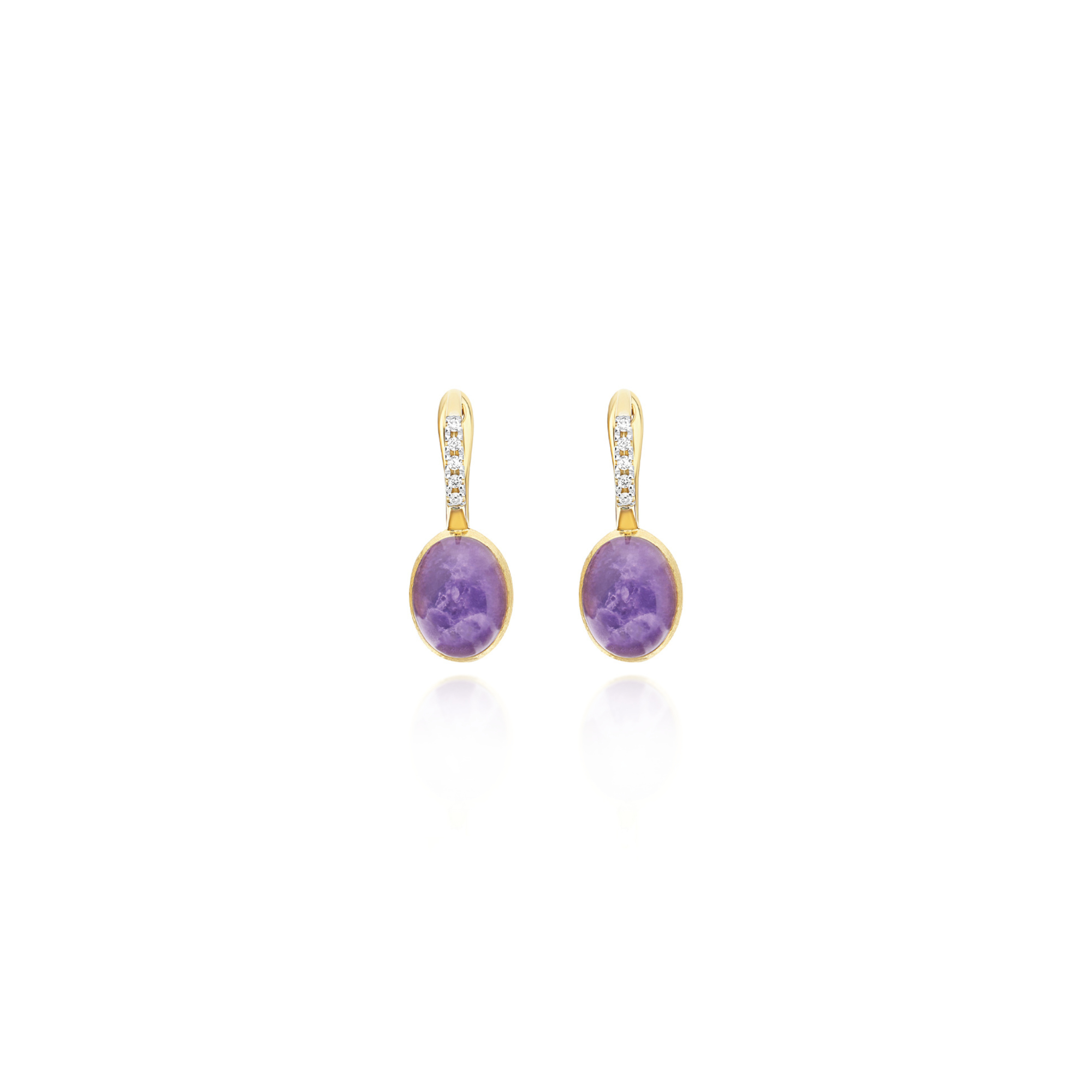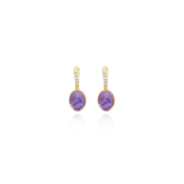 Ref. OS2-609 - Die Nostalgie für eine vergangene Epoche trifft in diesen Ciliegine Violetta Ohrringen auf die Moderne, in ihnen wird die ikonisch Boule aus 18kt Gold von Nanis auf kreative Weise durch eine Triplette aus Bergkristall, Lepidolith und Perlmutt kontaminiert. Ein Juwel in lebendigen Tönen, bereit, dir das Gefühl von Einzigartigkeit zu verleihen. Unser Ratschlag? Spiele mit verschiedenen Farben und Modellen der Ciliegine Reihe und kreiere deine Lieblings-Kombination.