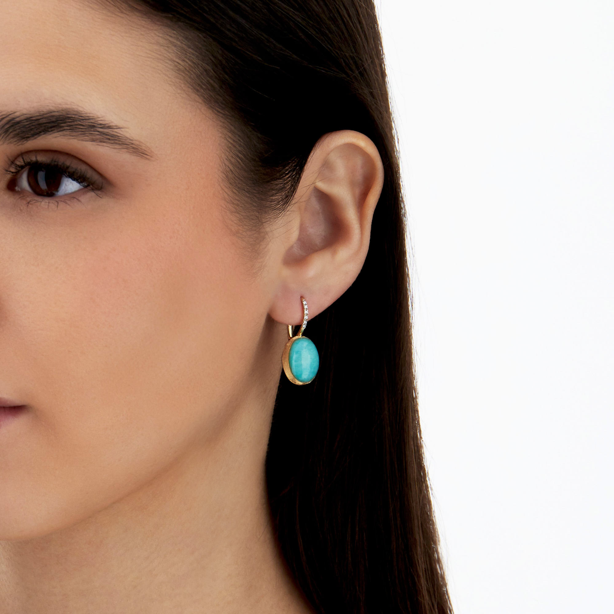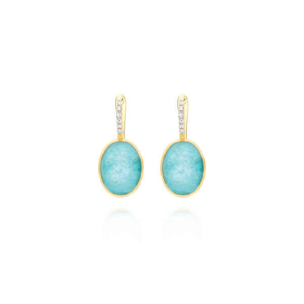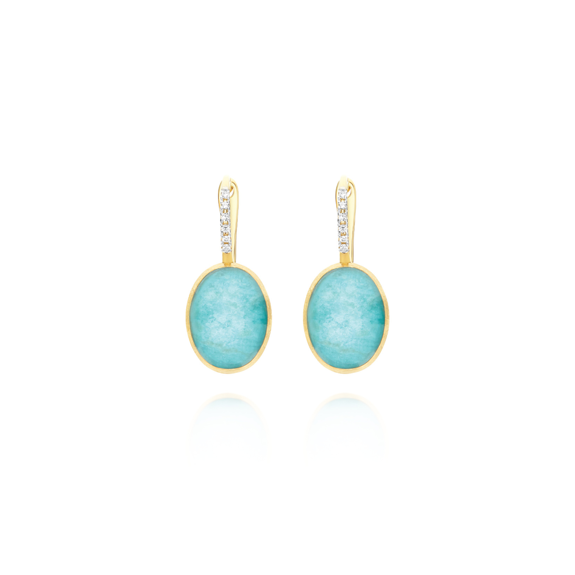 Ref. OS5-609 - Die ikonischen Nanis Ciliegine färben sich in dieser “Anice” (Anis) genannten Edition in einem schillernden grün-blauen Farbton, die sich exakt an der gleichnamigen Pflanze mit intensivem und entschlossenem Aroma inspiriert. Das 18kt Gold trifft in diesen Ohrringen auf eine Dublette aus Bergkristall und Amazonit, und erneuert mit Eleganz den Geschmack und den Charme dieses Juwels, gedacht, um deinem Stil einen Hauch Einzigartigkeit zu verleihen. Unser Ratschlag? Spiele mit verschiedenen Farben und Modellen der Ciliegine Reihe und kreiere deine Lieblings-Kombination.