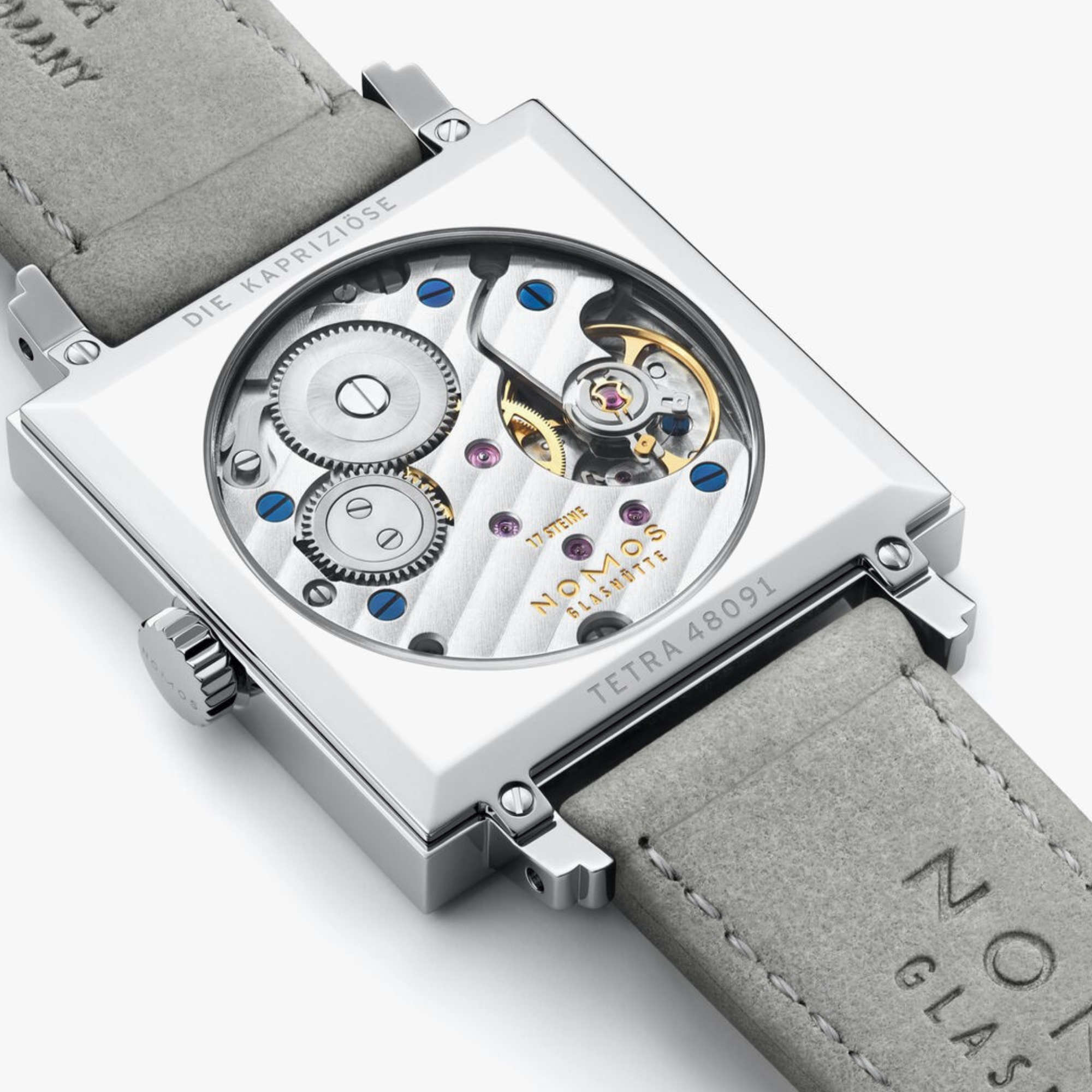 Ref. 474 - In sanftem Nude zeigt sich Tetra durchaus anspruchsvoll und krönt den Glanzpunkt ihrer kleinen Sekunde mit einem entschieden gelb lackierten Zeiger. Am samtgrauen Band aus veganem Velours unterstreicht diese zarte und zugleich sehr präsente mechanische Uhr jeden Stil aufs Schönste. Im Inneren tickt das manufakturgefertigte Alpha-Kaliber mit Handaufzug. Wertvoll und präzise – einzigartige Uhrmacherkunst aus Glashütte.Ihr Ansprechpartner