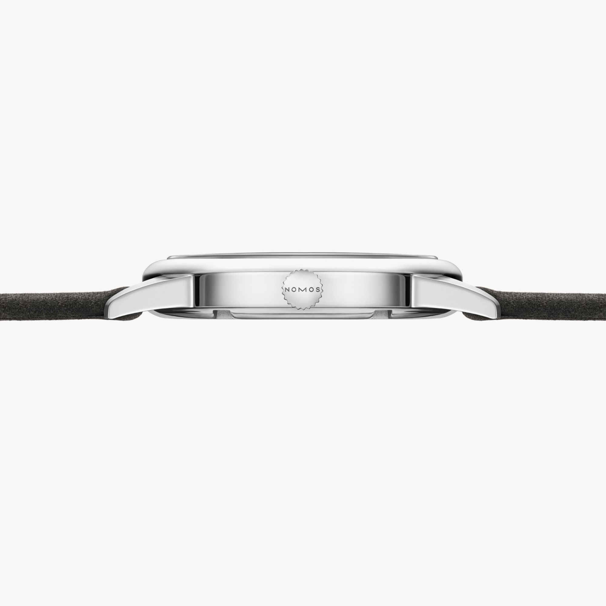 Anthrazitfarbenes veganes Veloursarmband mit Dornschließe.