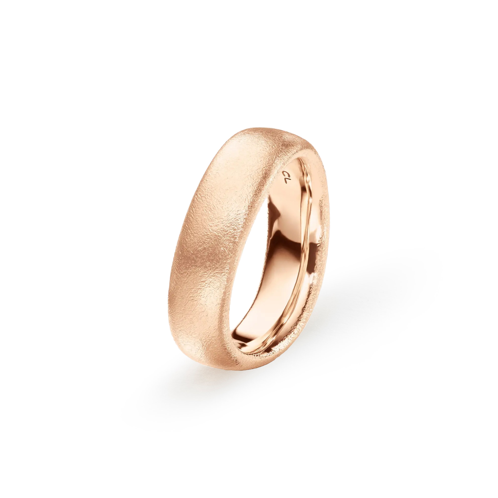 Ref. A1346-701 - Der von Charlotte Lynggaard entworfene Love Herrenring Nr. 6 ist aus 750/- Roségold gefertigt und hat auf der Innenseite ein Herz aus Emaille versteckt. Goldschmiedemeister bearbeiten die sichtbaren Oberflächen des Rings manuell, um das strukturierte Finish zu erreichen, und polieren die Innenseite von Hand. Teil der Ole Lynggaard Copenhagen Engagement and Wedding Collection.