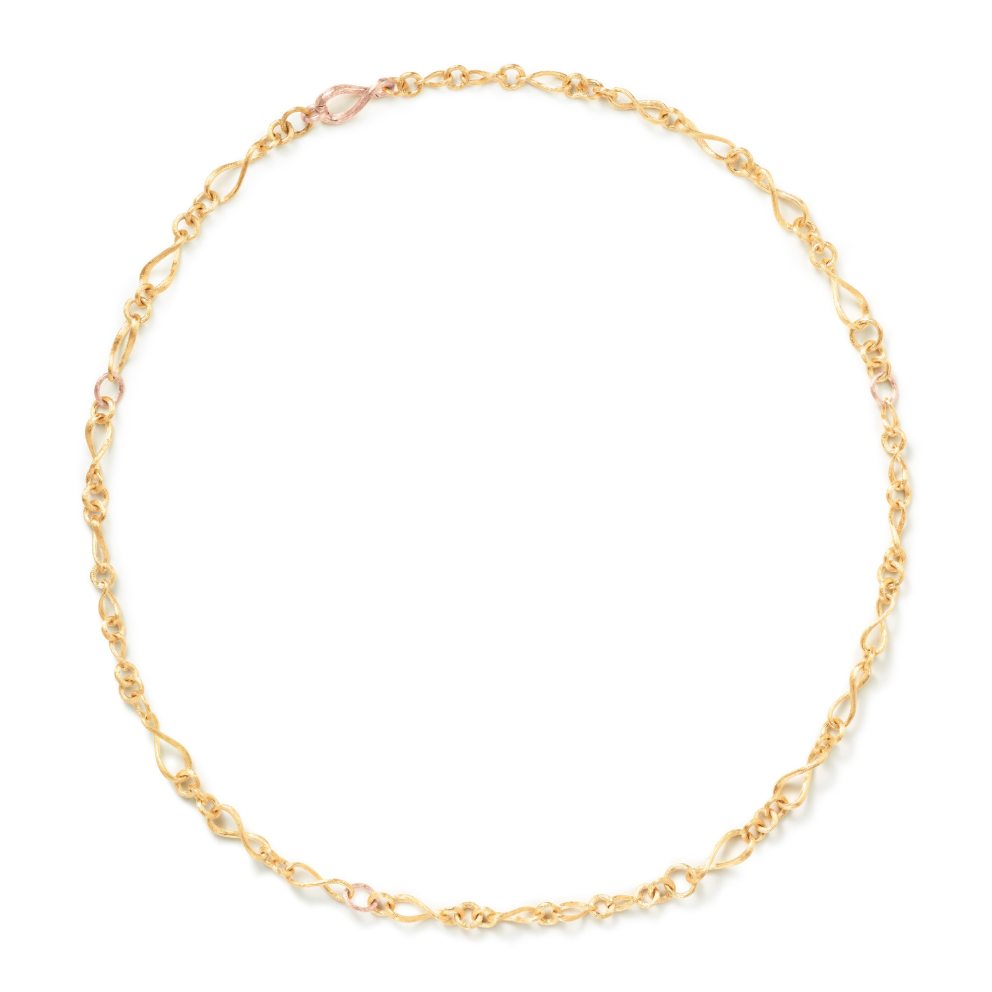 Ref. A1738-409 - Das von Charlotte Lynggaard entworfene Love-Collier, mini, ist aus 18-karätigem Gelb- und Roségold gefertigt. Die Gesamtlänge des Colliers beträgt 60 cm. Die einzelnen Glieder haben unterschiedliche Größen. Die Goldoberflächen werden von Goldschmiedemeistern von Hand satiniert. Teil der Love-Kollektion.Ihr Ansprechpartner