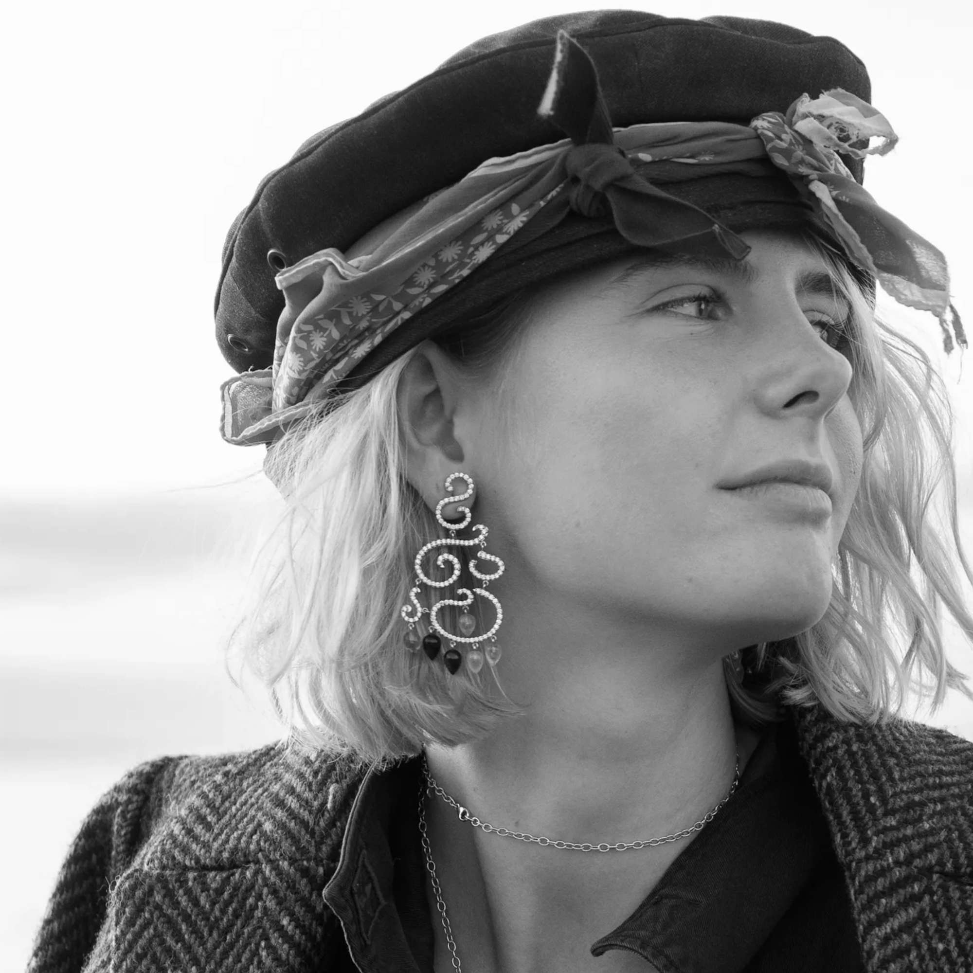 Ref. A2603-501 - Die Love Bands Chandelier-Ohrringe wurden von Charlotte Lynggaard entworfen und sind aus 750/- Weißgold mit 268 handgefassten Diamanten in unterschiedlichen Größen von insgesamt 4 carat TW. VS. und 8 grauen Mondsteintropfen gefertigt. Von Goldschmiedemeistern handgearbeitet. Als Paar zu erwerben. Teil der Love Bands Collection.Ihr Ansprechpartner
