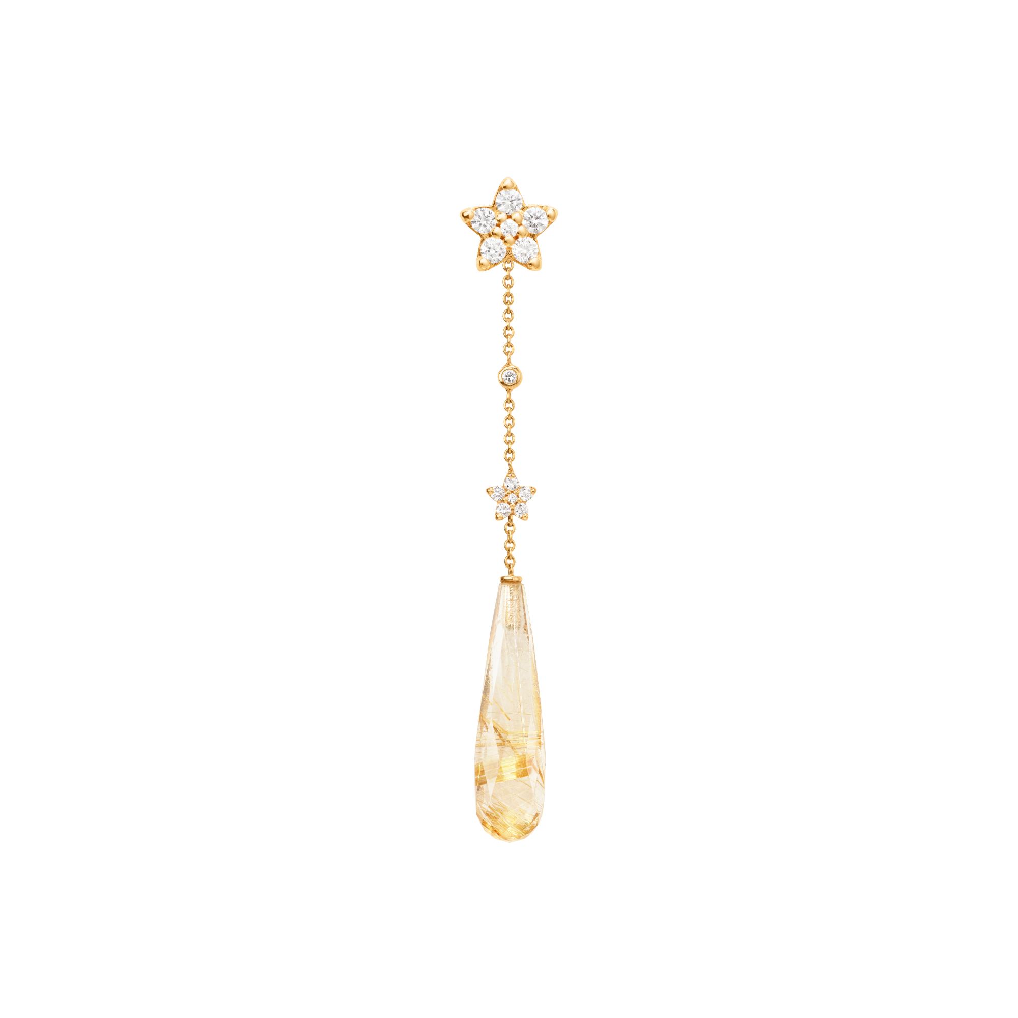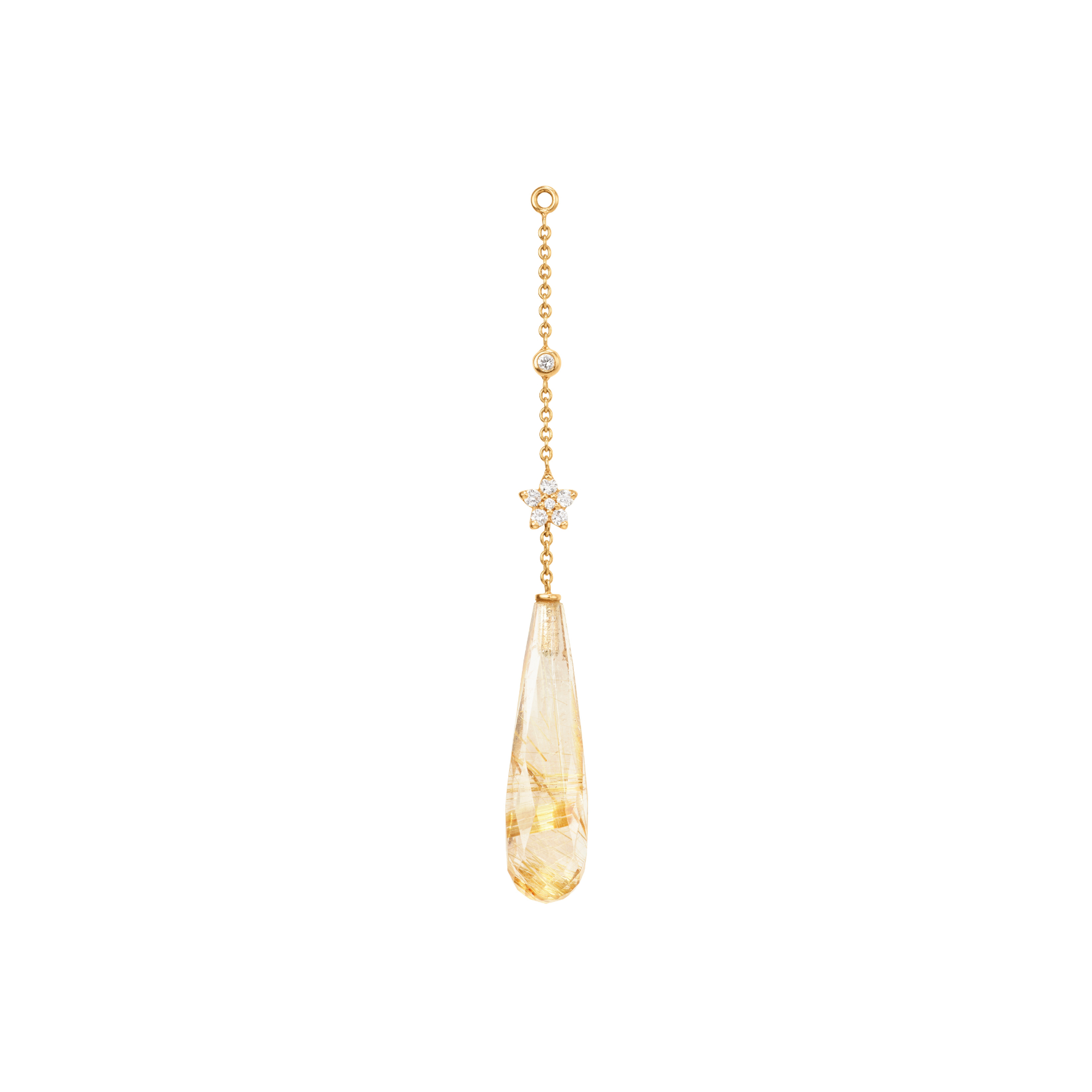 Ref. A2862-406 - Der von Charlotte Lynggaard entworfene Shooting Stars Ohrring-Anhänger ist aus 750/- Gold und 6 Diamanten von insgesamt 0,06 carat TW. VS. im Brillantschliff gefertigt, die von der Oberfläche abgehoben sind, um Licht durch die Facetten zu lassen. Der facettierte Rutilquarz misst 22x6mm und die Gesamtlänge des Anhängers beträgt 5,2cm. Handgefertigt von Goldschmiedemeistern. Als Einzelstück zu erwerben.Ihr Ansprechpartner