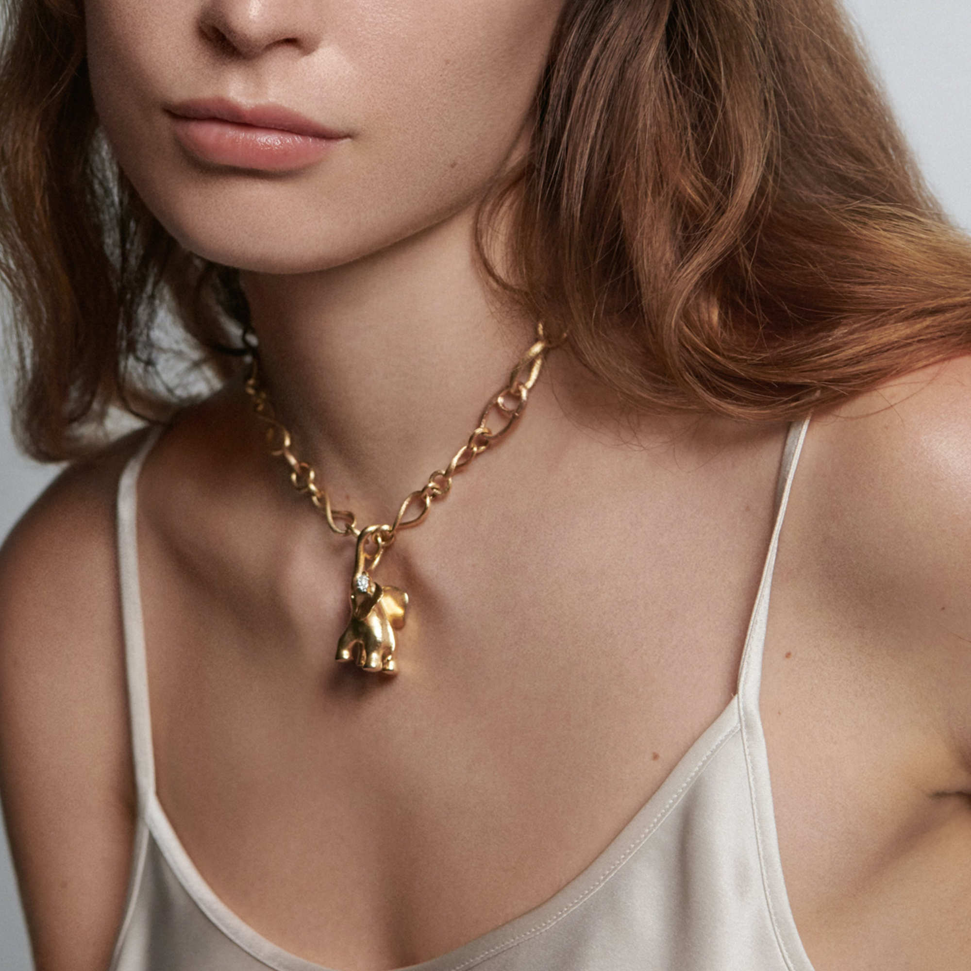 Ref. A2880-401 - Der von Ole Lynggaard entworfene Elephant Anhänger groß ist 41 mm hoch, aus 750/- Gelbgold gefertigt und mit 24 Diamanten in Pavé-Fassung von insgesamt 0.11 ct. TW. VS. besetzt. Die kontrastierenden, gehämmerten und polierten Oberflächen sind von Goldschmiedemeistern handgefertigt. Teil der Elephant Collection.Ihr Ansprechpartner
