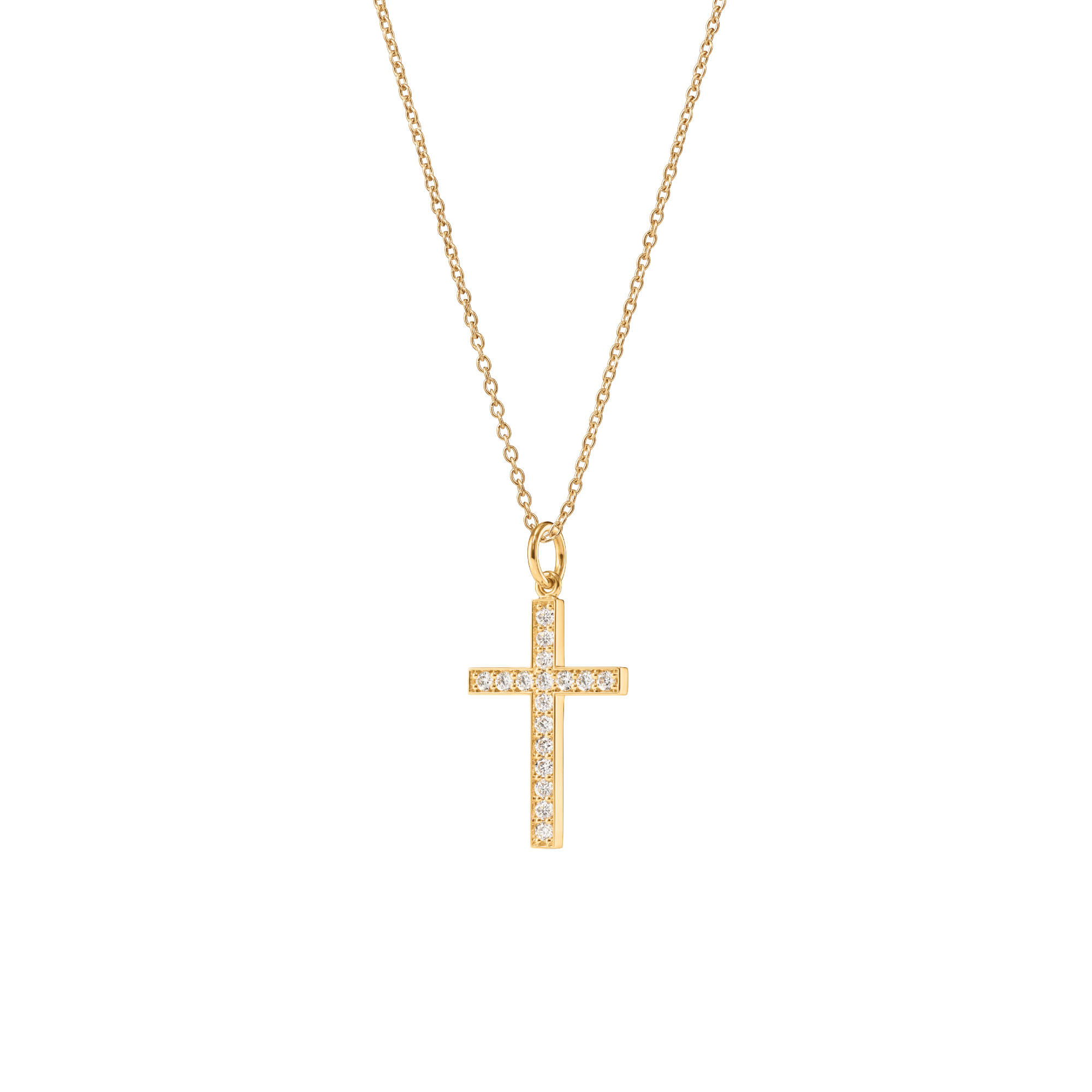 Ref. A2951-402 - Der von Charlotte Lynggaard entworfene Cross Anhänger ist aus poliertem 750/- Gelbgold mit 17 Diamanten von insgesamt 0,51 carat TW. VS. gefertigt und ist 25 mm hoch. Handgefertigt von Goldschmiedemeistern. Teil der Cross Kollektion.Ihr Ansprechpartner