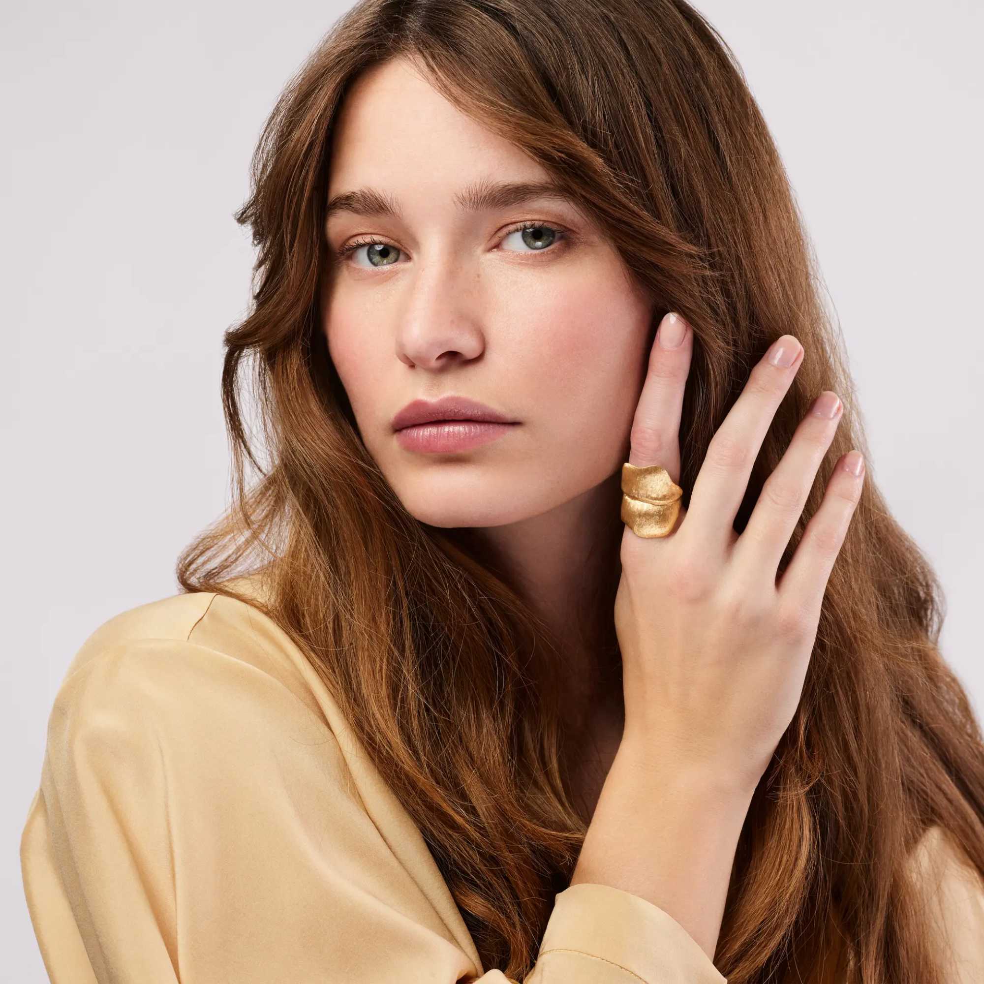 Ref. A3010-401 - Der von Charlotte Lynggaard entworfene Leaves Ring ist aus 18-karätigem Gelbgold gefertigt. Die Goldschmiedemeister verwenden verschiedene Techniken und Werkzeuge, um die Oberflächen des Rings von Hand zu formen und zu bearbeiten. Teil der Leaves Kollektion.Ihr Ansprechpartner