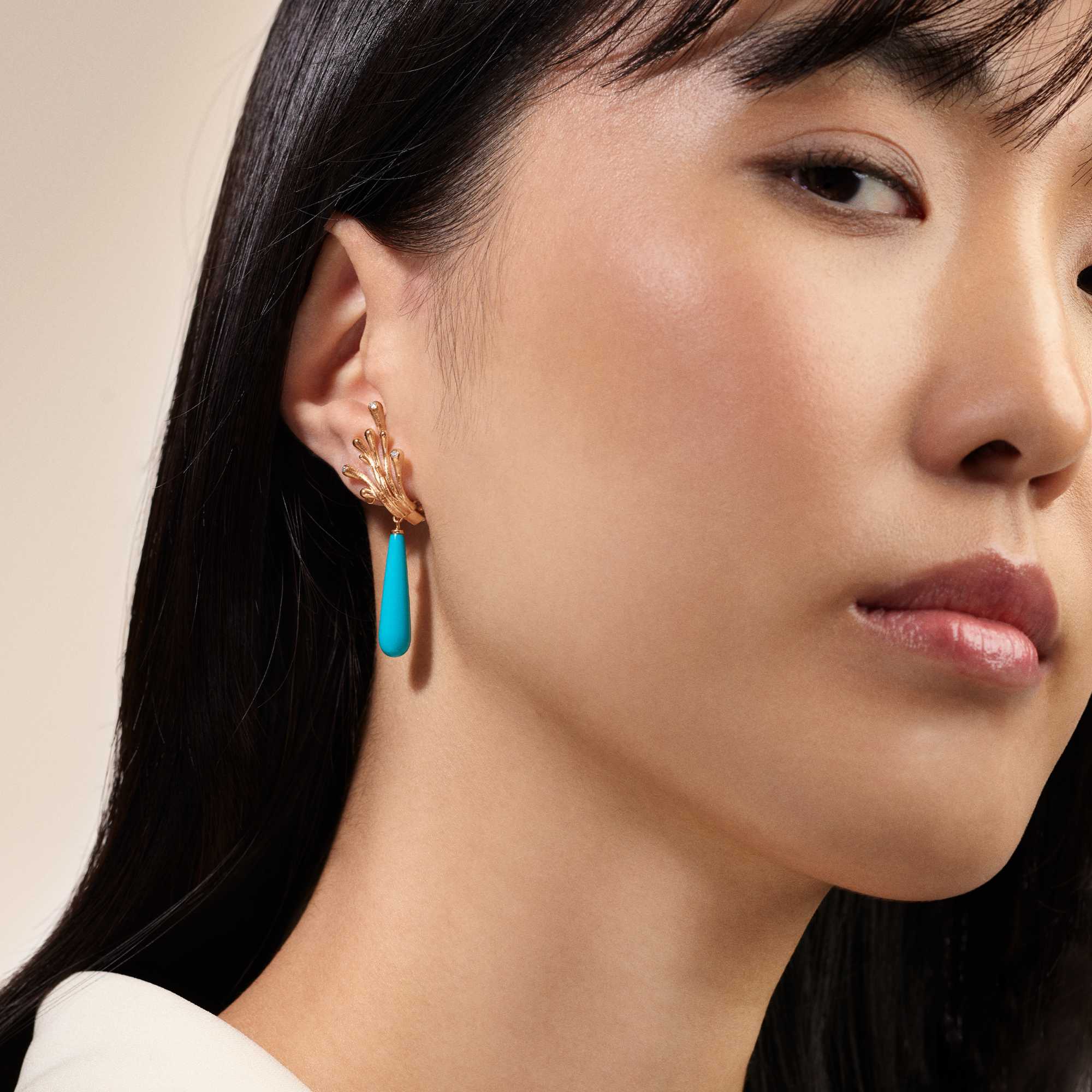 Ref. A3081-406 - Einhänger-Haken 18 Karat Gelbgold mit türkisfarbenem Cabochon-Tropfen 22x6mm PaarIhr Ansprechpartner