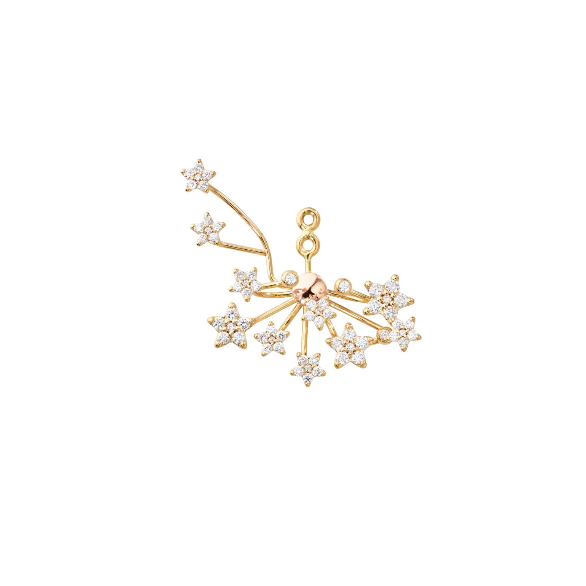 Ref. A3138-401 - Dieser von Charlotte Lynggaard entworfenen Shooting Stars-Ohrringanhänger ist aus 750/- Gelbgold gefertigt und mit 63 Diamanten von insgesamt 0,45 Karat tw/vs besetzt. Das Design stellt einen Sternenhimmel dar. Jeder Stern ist mit sechs Diamanten im Brillantschliff besetzt, die von der Oberfläche abgehoben sind, um Licht durch die Facetten dringen zu lassen. Die Goldoberflächen werden von Goldschmiedemeistern handpoliert. Der Shooting Stars-Ohrringanhänger lässt sich hinter dem Ohrläppchen an einem Shooting Stars-Ohrstecker anbringen und kann mühelos an unterschiedlichen Ohrringen befestigt und wieder abgenommen werden. Der Anhänger ist sowohl in linker als auch in rechter Ausführung erhältlich. Als Einzelstück verkauft. Teil der Shooting Stars-Kollektion.Ihr Ansprechpartner