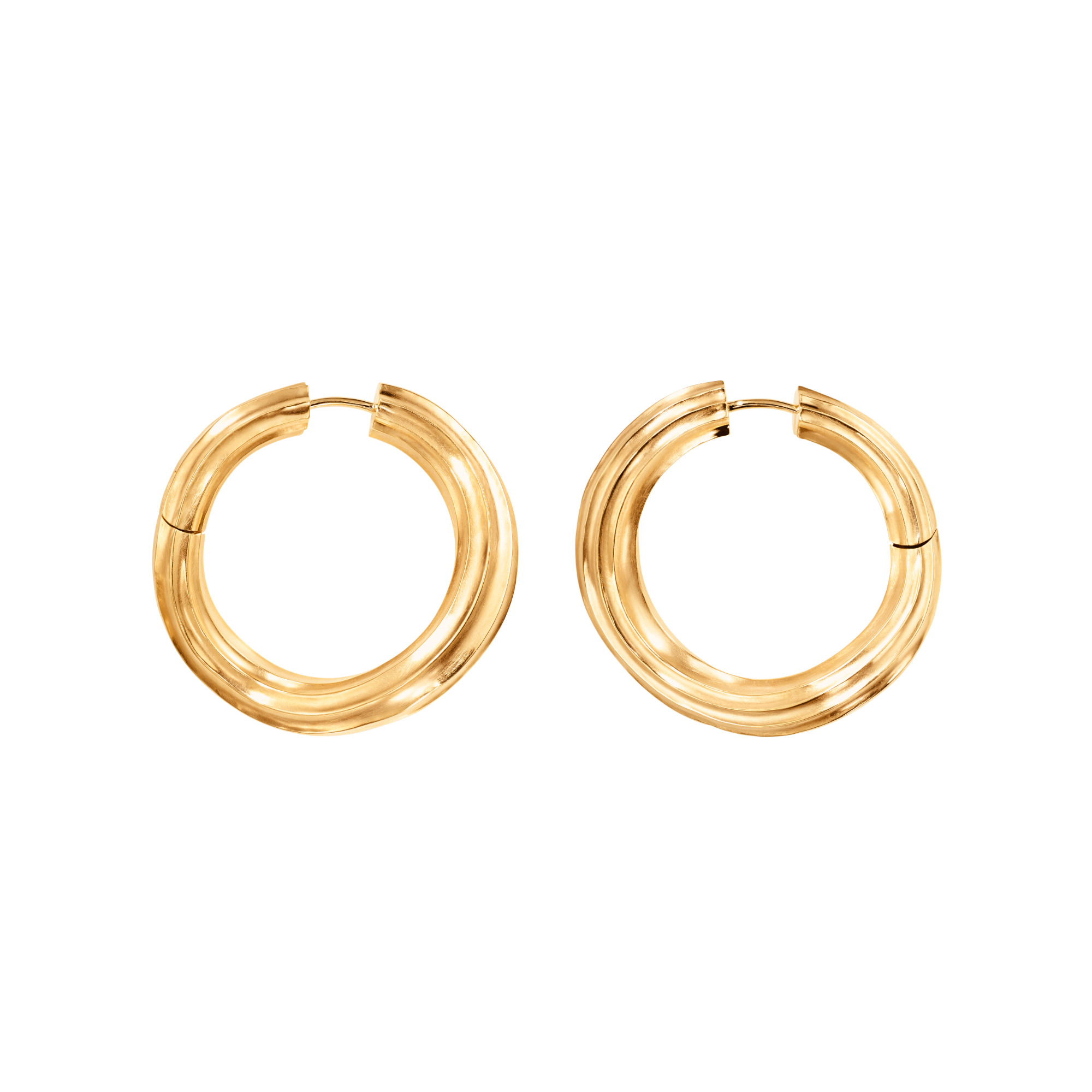 Ref. A3144-401 - Von Sofia Lynggaard Normann entworfen. Diese großen Under the Sea-Ohrringe sind aus 18-karätigem Gelbgold gefertigt. Die Formen und Oberflächen des Designs sind von den natürlichen Bewegungen des Meeres und den im Sand entstehenden Strukturen inspiriert. Als Paar verkauft. Teil der Under the Sea-Kollektion.