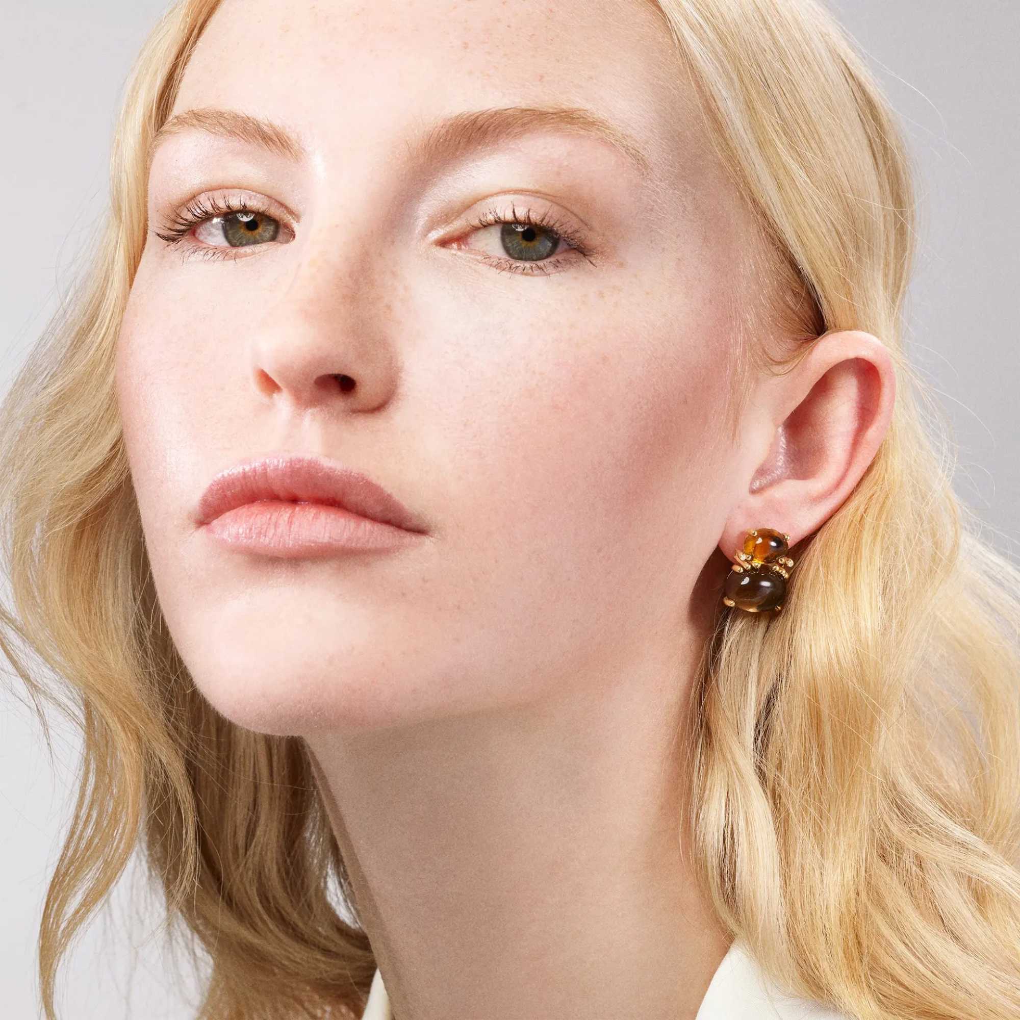Ref. A3223-411 - Diese BoHo-Ohrstecker, entworfen von Charlotte Lynggaard, sind aus 18 Karat Gelbgold gefertigt und mit zwei Rauchquarzen, zwei gelben Turmalinen und vier Diamanten mit einem Gesamtgewicht von 0,01 Karat besetzt. TW VS. Jeder Ohrring verfügt über eine kleine Öse für Ohrringanhänger. Verkauft als Paar. Teil der BoHo-Kollektion.Ihr Ansprechpartner